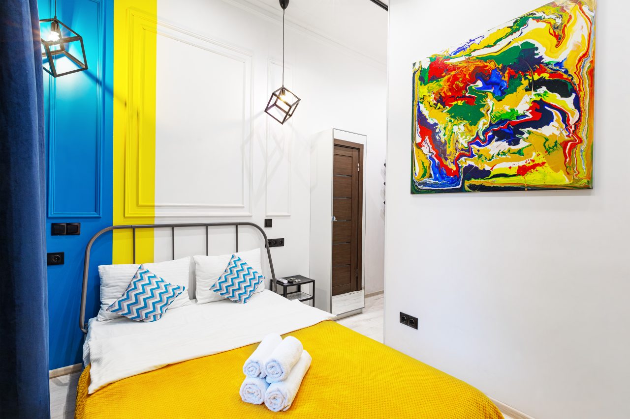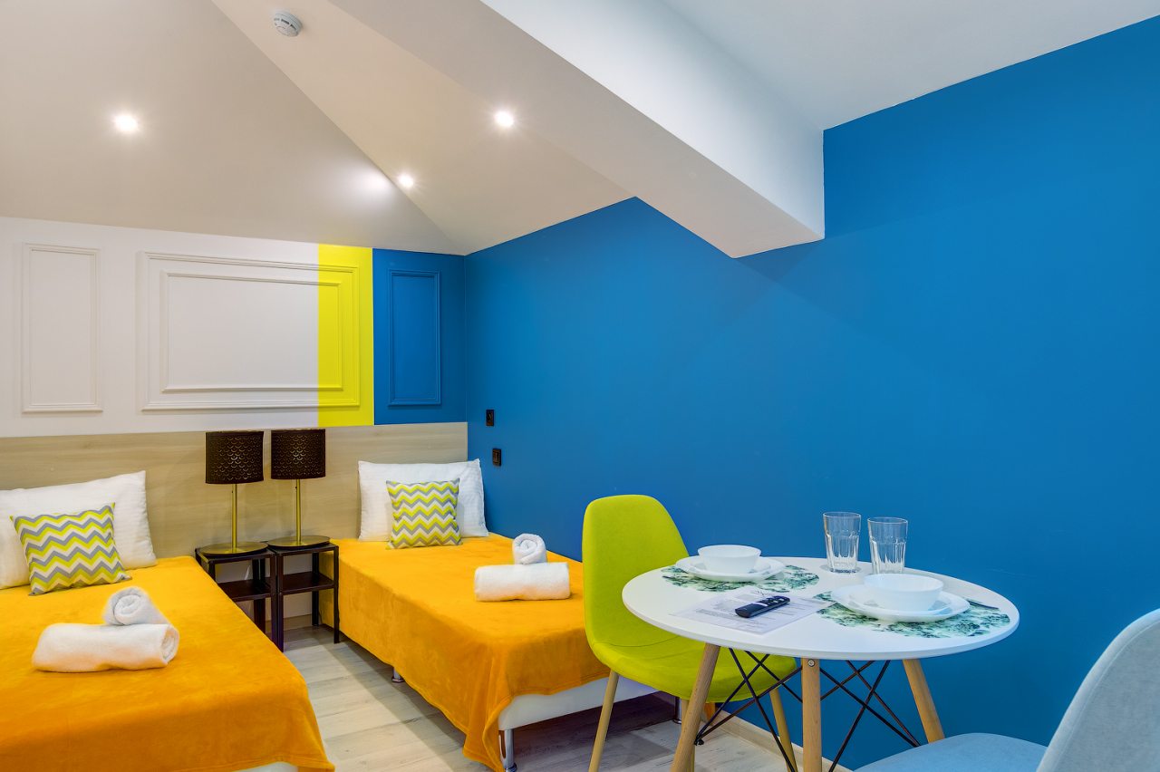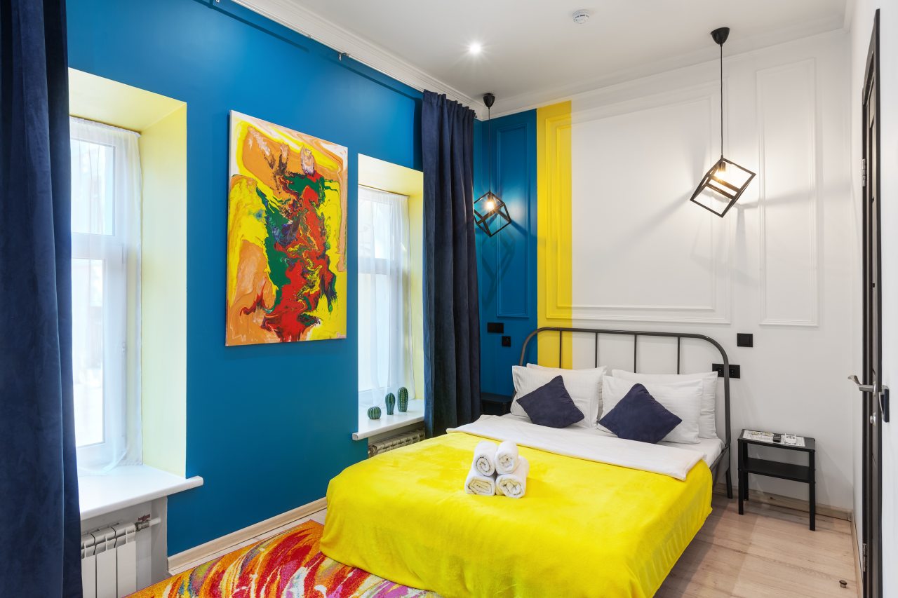 Опрятный компактный номер, приятное сочетание цветов в дизайне интерьера.