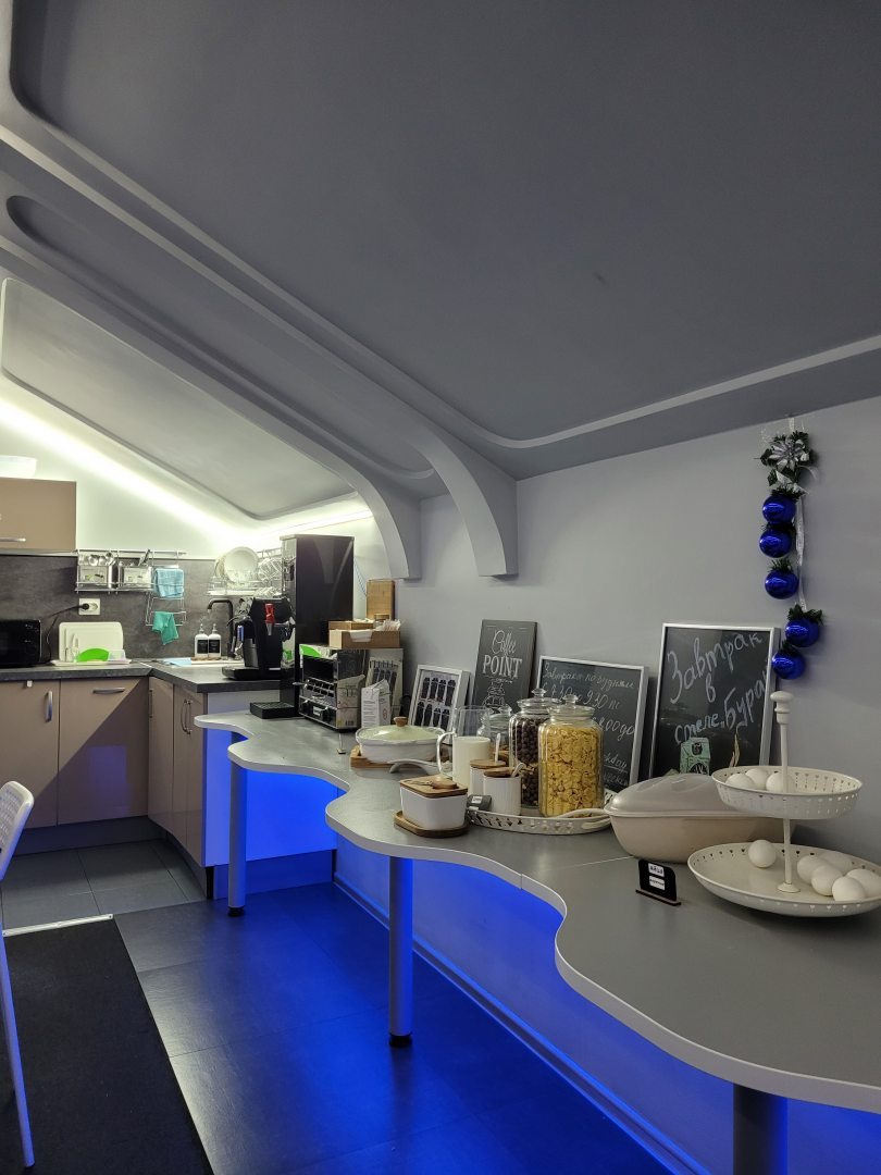 Доброжелательные сотрудники , в стоимость входит завтрак , большая кухня , она же общая зона посидеть за компьютером в телефоне , самое главное это тишина в многоместном номере !