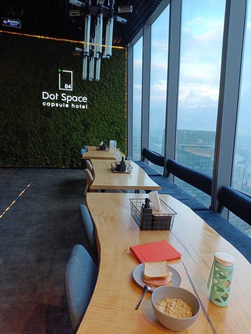 Красивый вид на Москву с 84 этажа. Сравнительно тихо. Удобная капсула с проходом и панорамным окном. Завтрак включен. Есть комната для хранения вещей.