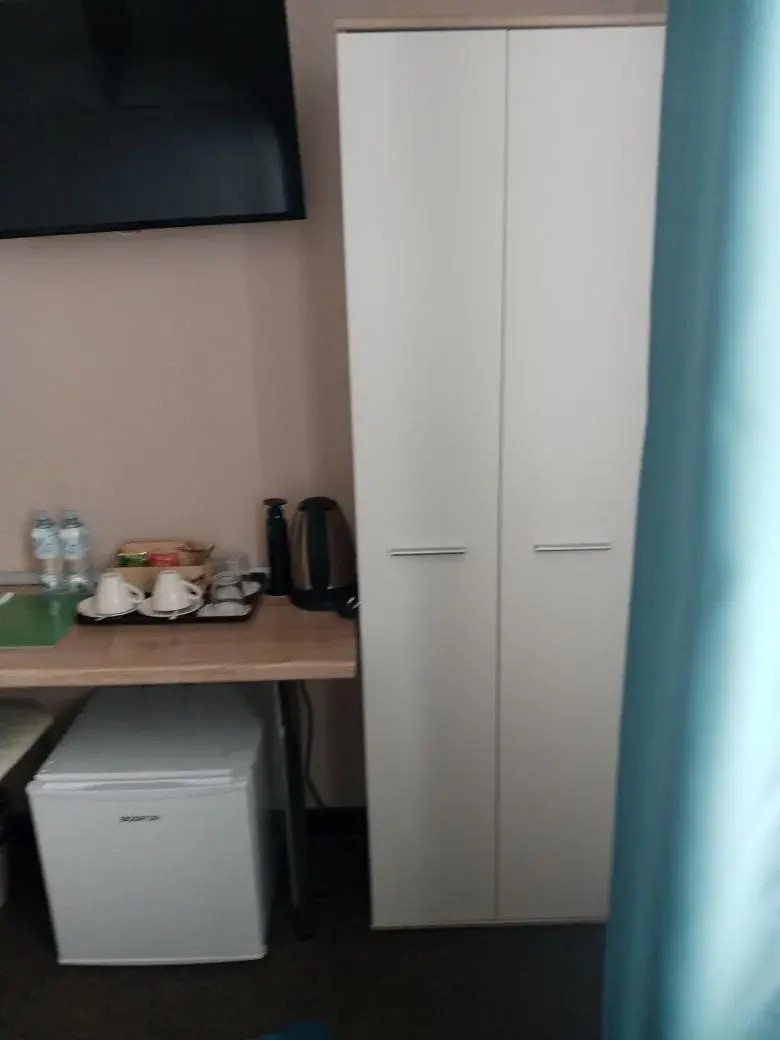 Уютно. Чистый отель с новой мебелью, тихая просторная комната. Хороший свет в номере и в ванной. Чайник в номере, кулер с водой на этаже.