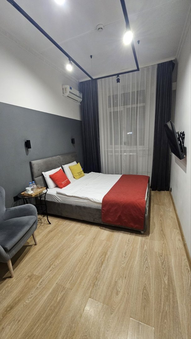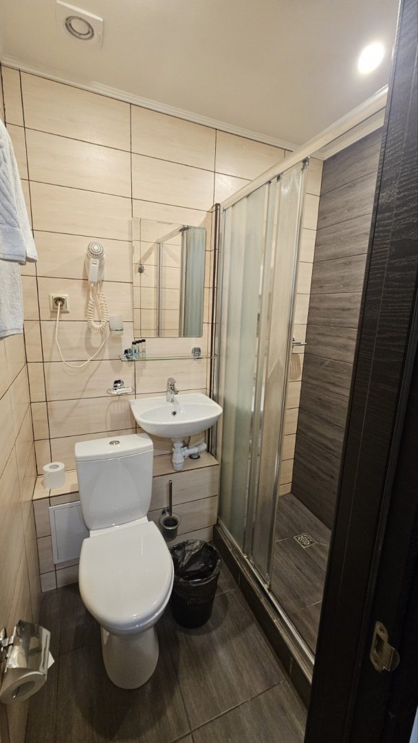 Отель приятный, такой лаконичный с хорошим современным ремонтом. Пользоваться номером было приятно. Санузел у нас был свой, в нем отлично разместились. Качественная мебель и техника добавили желаемого уюта. Кафе, магазины поблизости работают. До метро идти не более 5 минут.