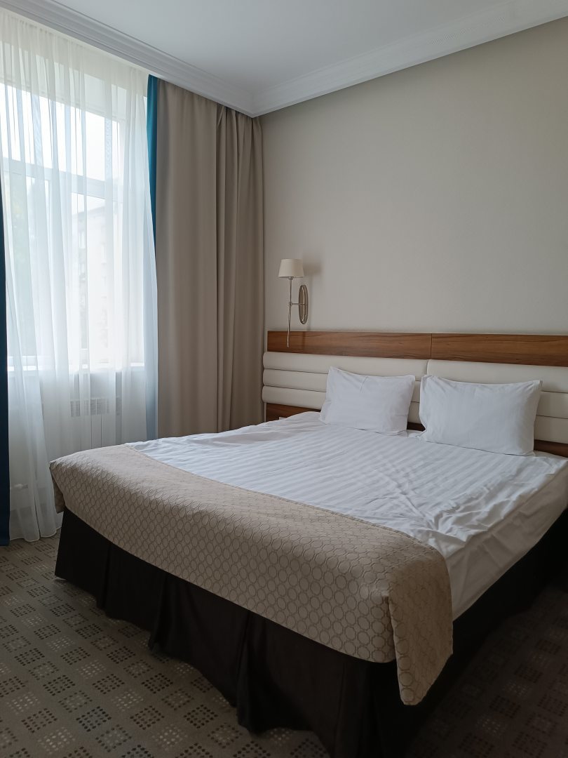 Номер чистый,свежий ремонт, для одного вполне просторный , удобная кровать, белоснежное постельное белье. В номере мини чайник , чашка для чая, холодильник. На 4 этаже гладильная комната. Завтрак шведский стол, я покупала отдельно, но выгоднее сразу опалатить завтраки.Самое главное - это сон. Шумоизоляция идеальна! Шторы блэкаут. Спала крепко.