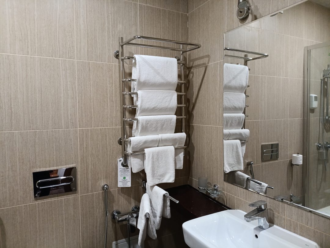 Из недостатков: нет гигиенического набора. Есть мыло в диспенсере над раковиной и есть что то в диспенсере в душевой кабине. Набор для чистки Зубов можно купить на ресепшн.