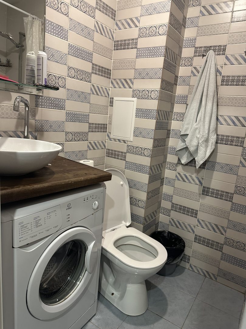 Из недостатков: короткая штора в душе, после приема душа весь пол залит.