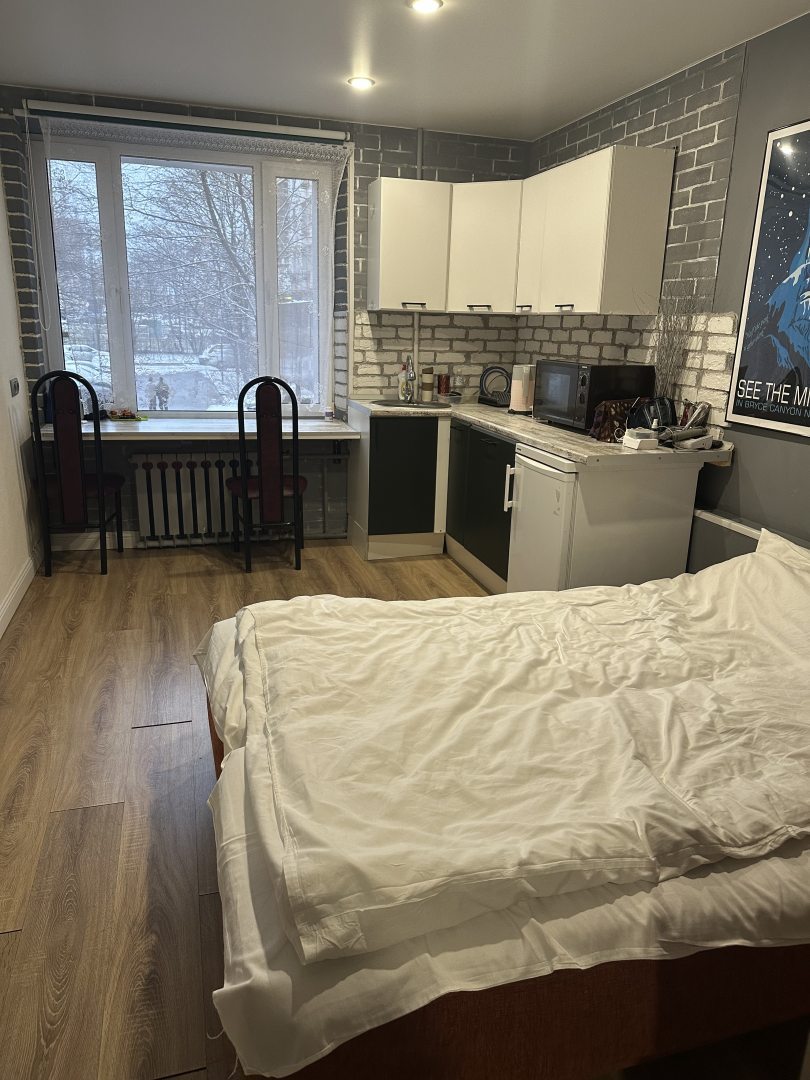 Уютный номер, отдельно прихожая , для проживания есть всё необходимое: чайник, посуда, микроволновка, электроплита (правда, ей мы не пользовались), в номере тепло. В 3-х минутах от метро.