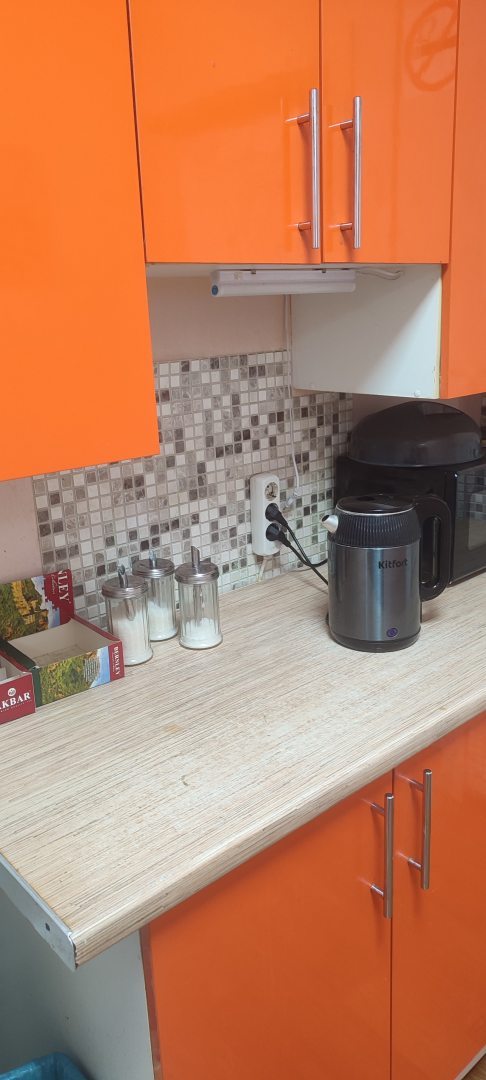 Из недостатков: мало места на кухне (и холодильнике), в часы пиковые много народу, но место было всегда.
