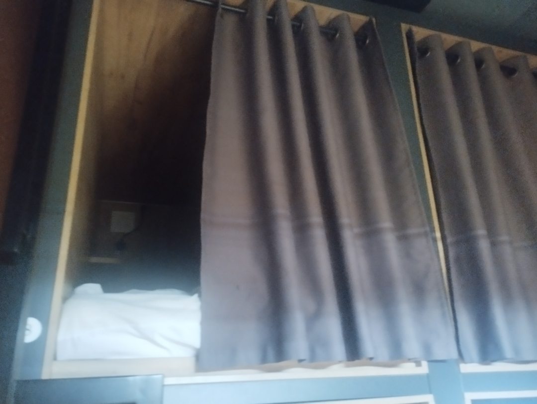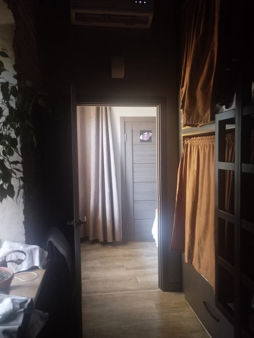 Приятный хостел, симпатичный интерьер, хорошее местоположение, удобные капсулы для сна, добротные и плотные шторки, есть ящики для вещей с ключами - хватает на то, чтобы разместить пару рюкзаков и две пары обуви, в душе есть шампуньгель для душа, можно попить чай на кухне, есть холодильник и микроволновка. Удобно, что можно заселиться ночью.