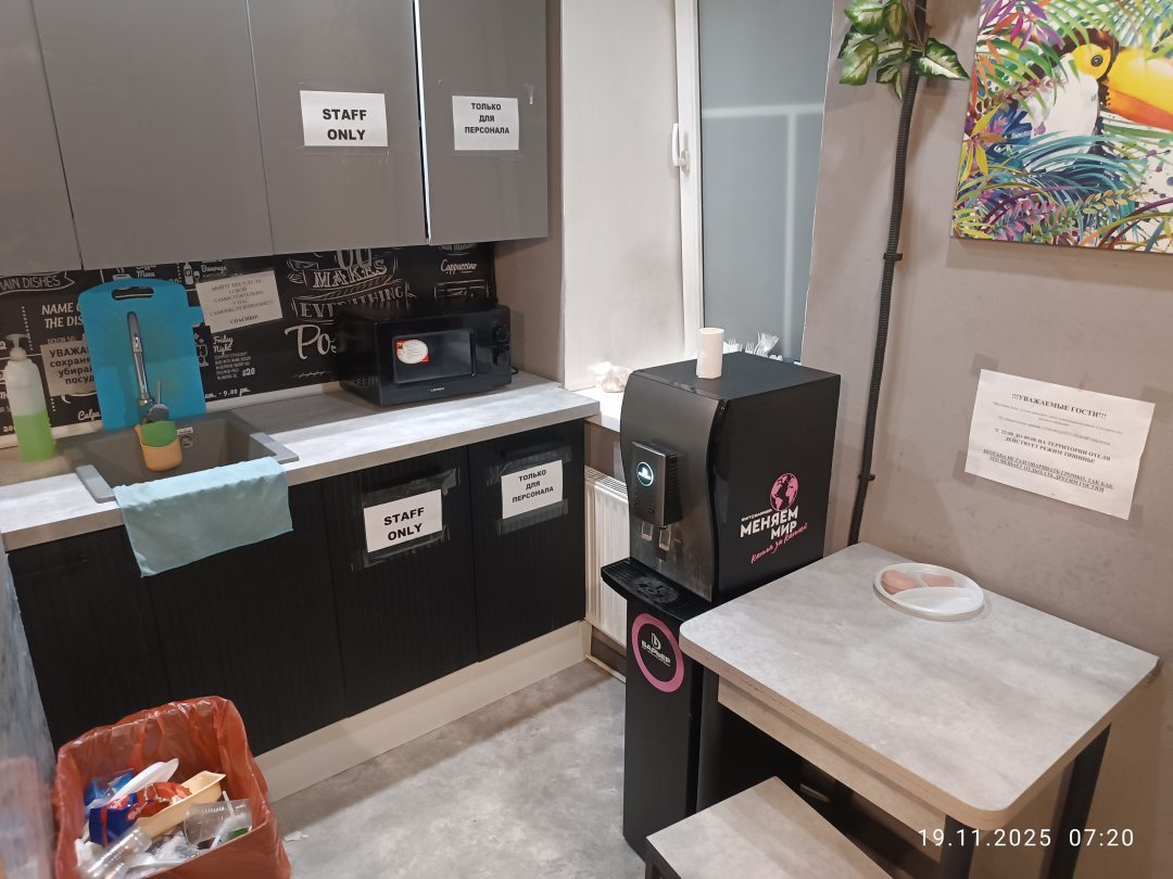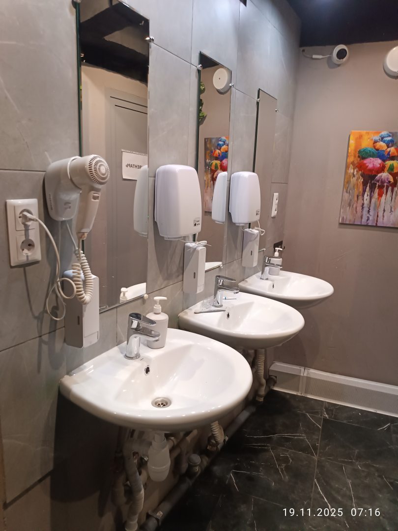 Соотношение ценакачество хорошее. Расположение удачное, действительно недалеко от трёх вокзалов. Душевые и туалеты чистые, на кухне одноразовая посуда, кулер, микроволновка.