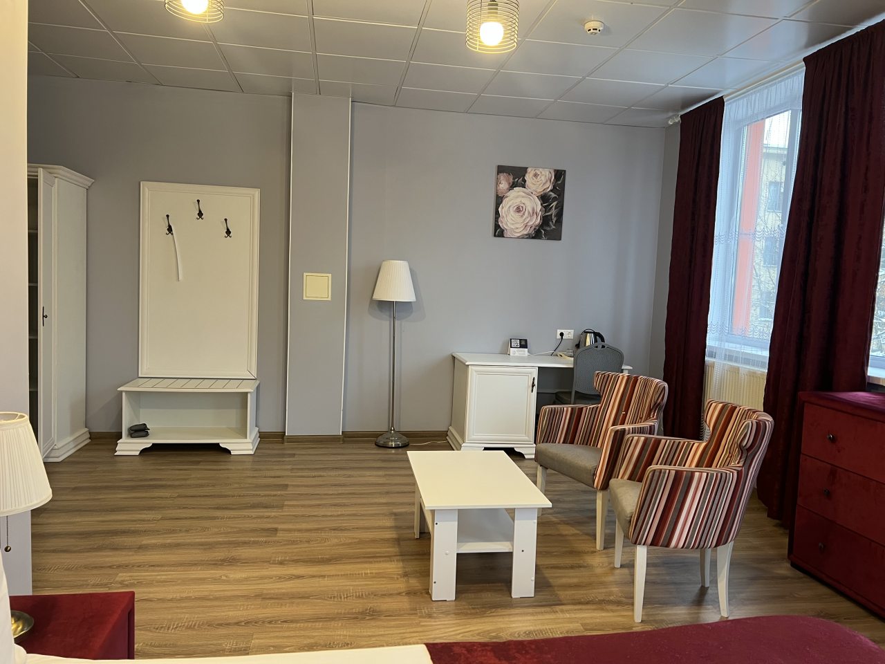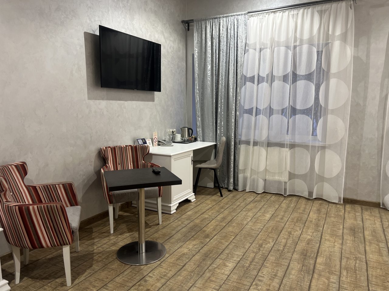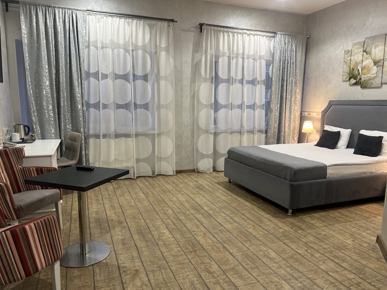 Приветливый, отзывчивый персонал. Большой, светлый номер. Все работает хорошо. Телевизор, фен, вода, канализация.... Ежедневная уборка номера по желанию. У нас номер стандарт и тоже входит услуга. Можно заказать питание, цены очень приемлемые и аппетитное меню. До метро 8 минут. Парковка на территории довольно большая.