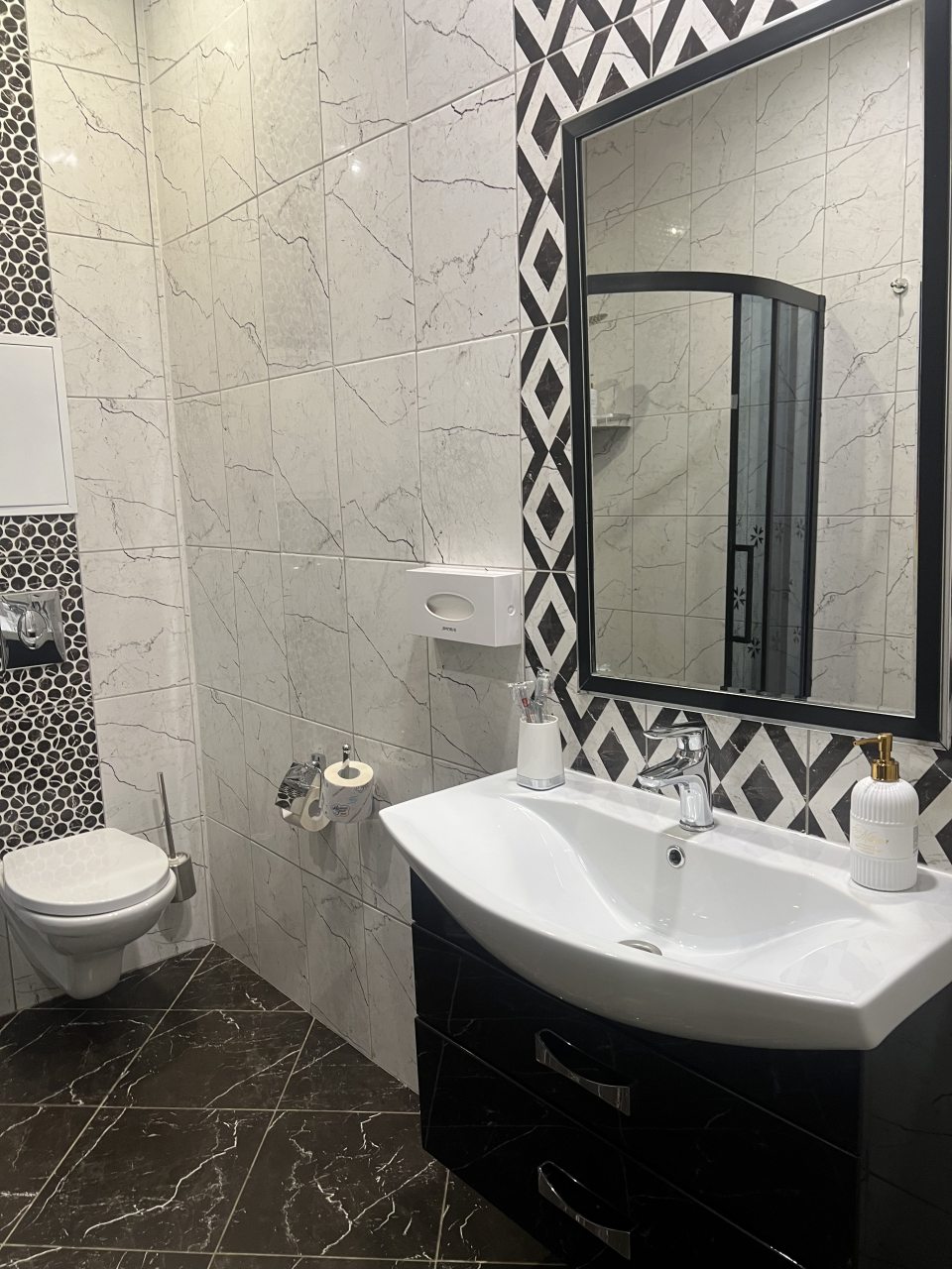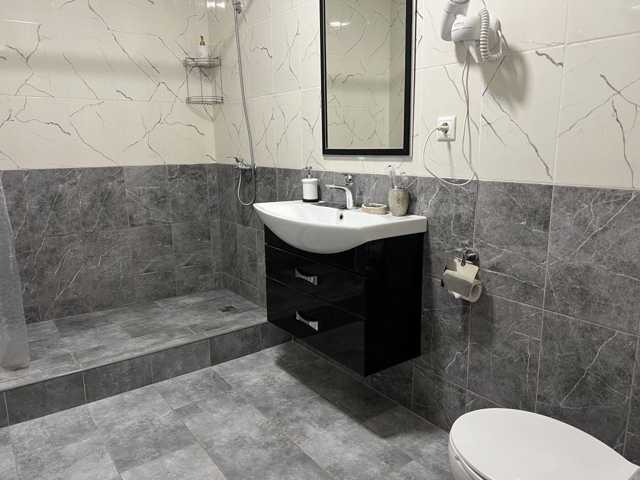 Из недостатков: необходима тумбочка полочка в ванную. И на улице лёгкий шум как вентиляция помещения... Не поняли откуда идёт звук, и может быть не во всех номерах это слышно.