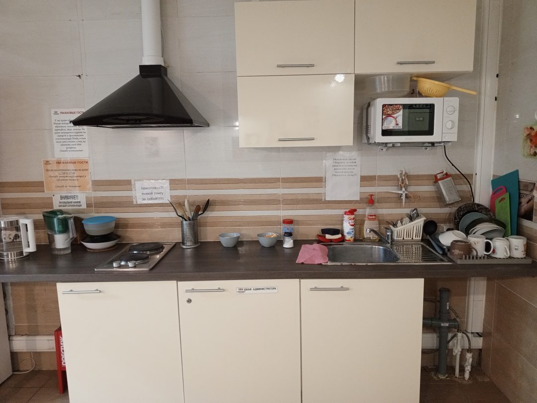 Вежливая администратор. Чисто, тихо, уютно. Очень уютно! Без посторонних запахов. Хостел находится на первом этаже многоэтажного дома.