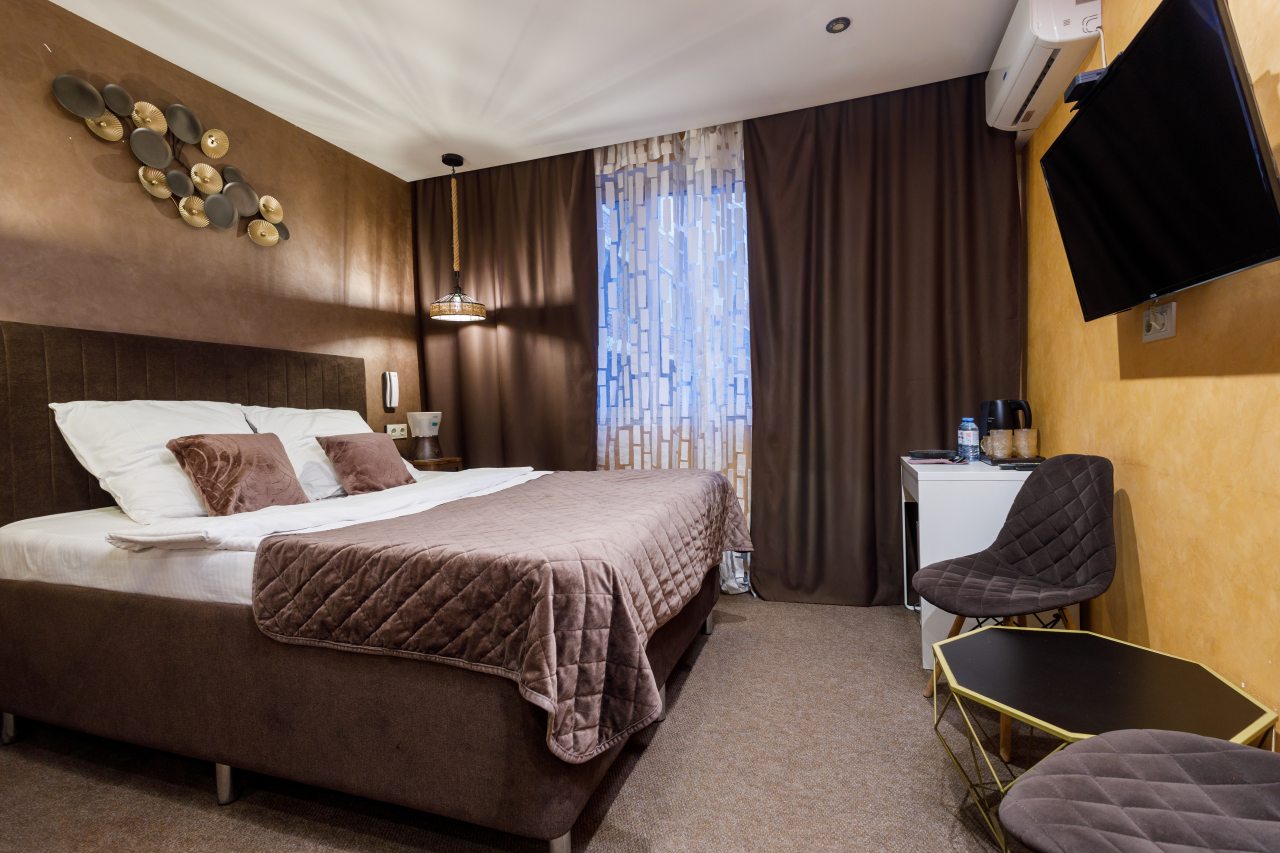 Выбрал этот отель, так как неподалку находится наша клиника. Номер просторный, телевизор огромный со смарт тв, ванная комната большая с джакузи, все принадлежности на месте. Номер красиво оформлен, огромное зеркало напротив кровати. Очень тихий спальный район без машин, спали как убитые.