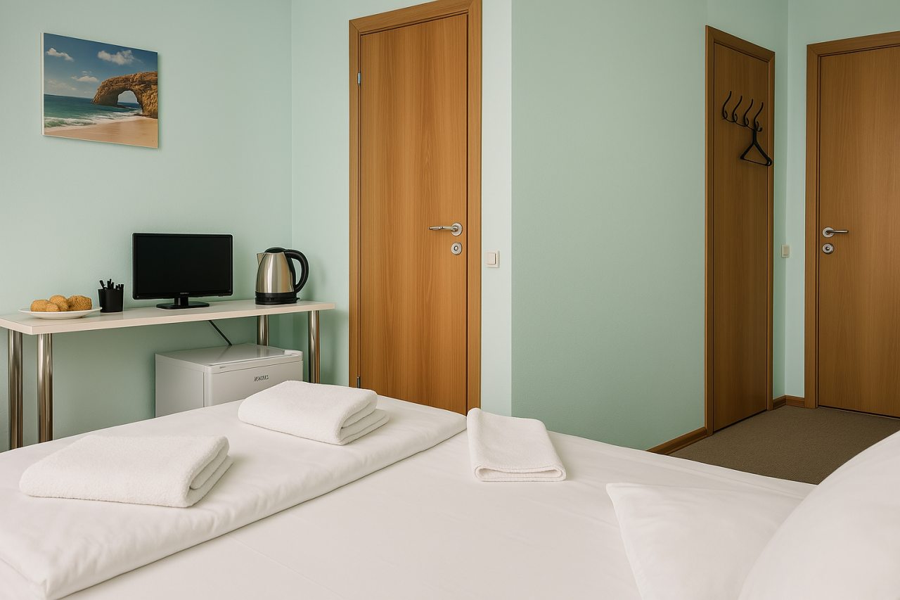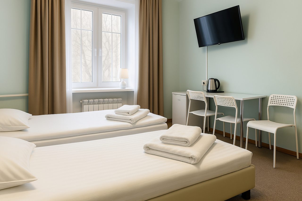 Из недостатков: недружелюбное отношение администратора при заезде 30.12.24 н . Недостаточно чистая уборка номера, в ванной комнате совсем не убирали. Не всегда клали гель для душа и шампунь