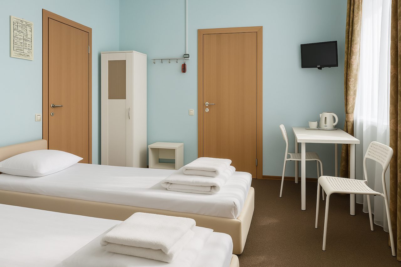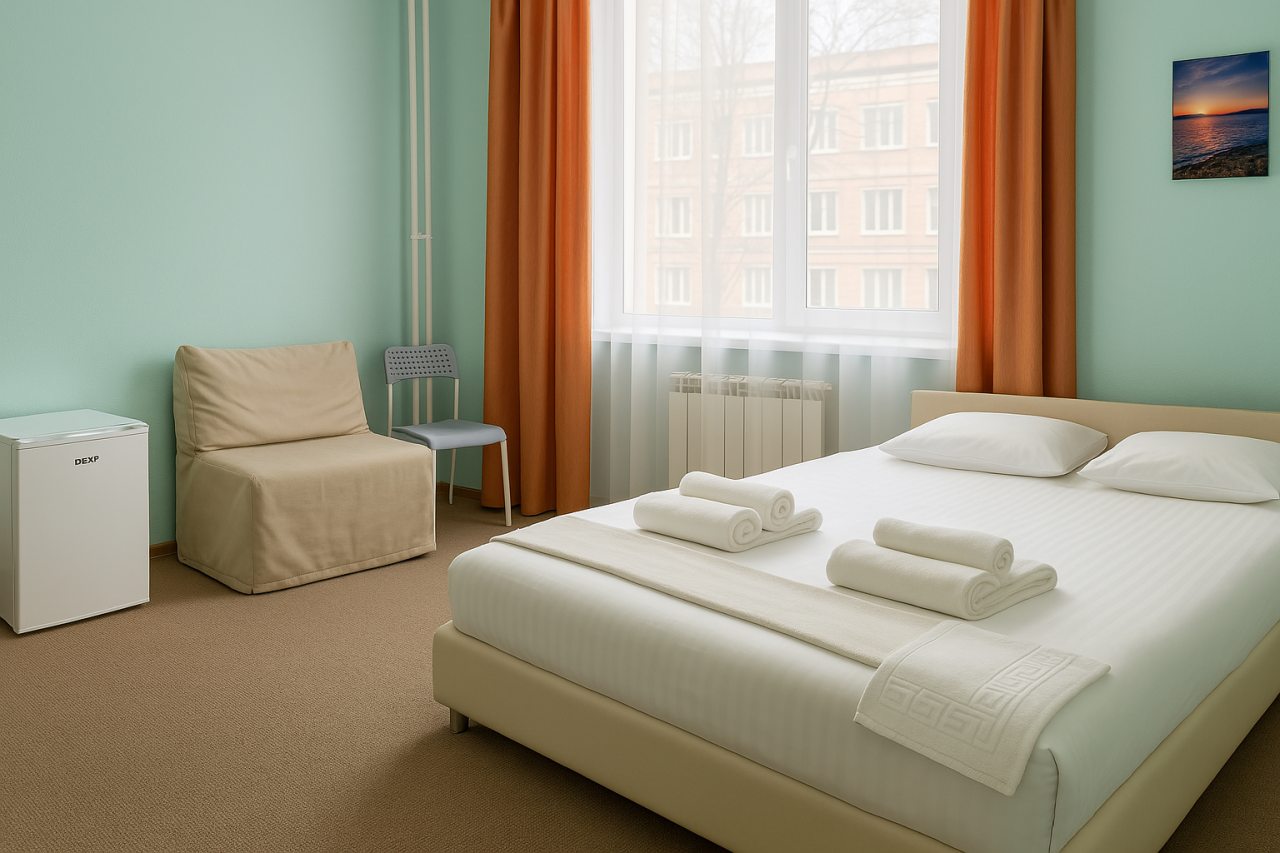 Неплохой отель с приятными ценами на номер. Недалеко от метро и магазинов. В номере холодильник и чайник, все рабочее и в приличном состоянии. Так как отель существует при православном приходе, в холле расположены иконы. Учтите те, кому такие моменты принципиальны. Мне это, наоборот, понравилось, необычное решение.