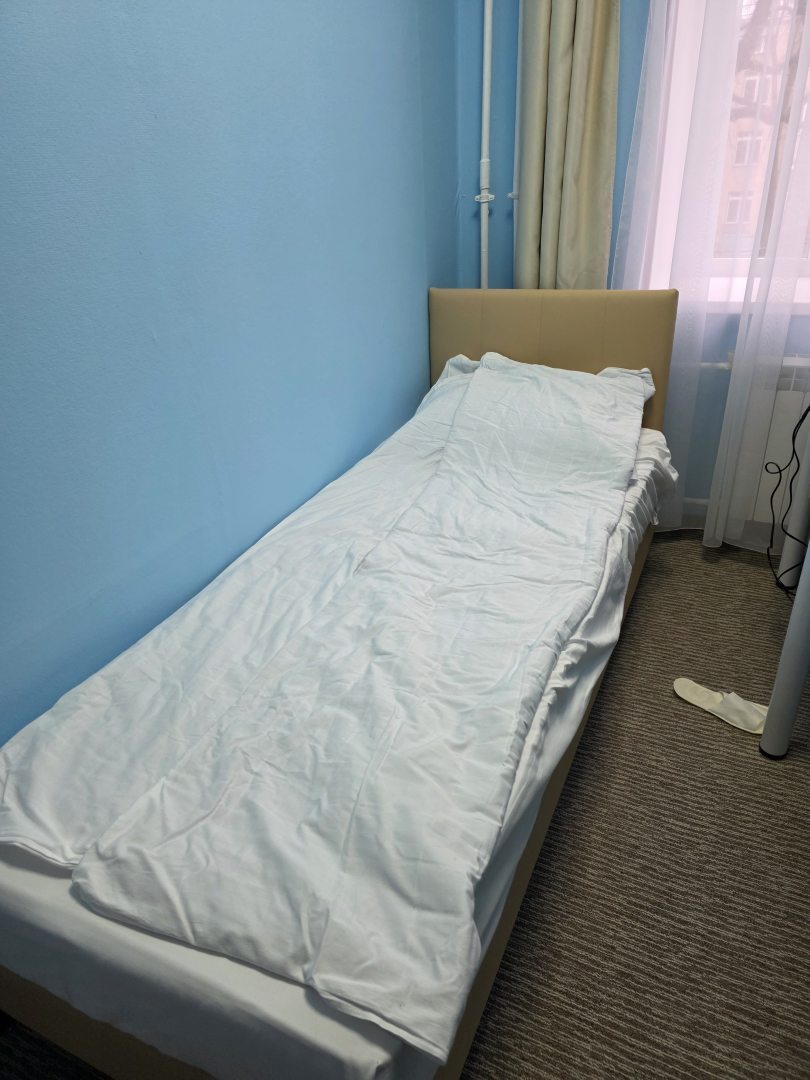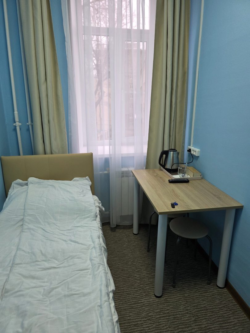 Довольно чисто в номере, тепло, даже жарко. Чистое постельное белье, хороший матрас. Есть чай-сахар, но нет кулера с водой, на этаже утюг и микроволновка.