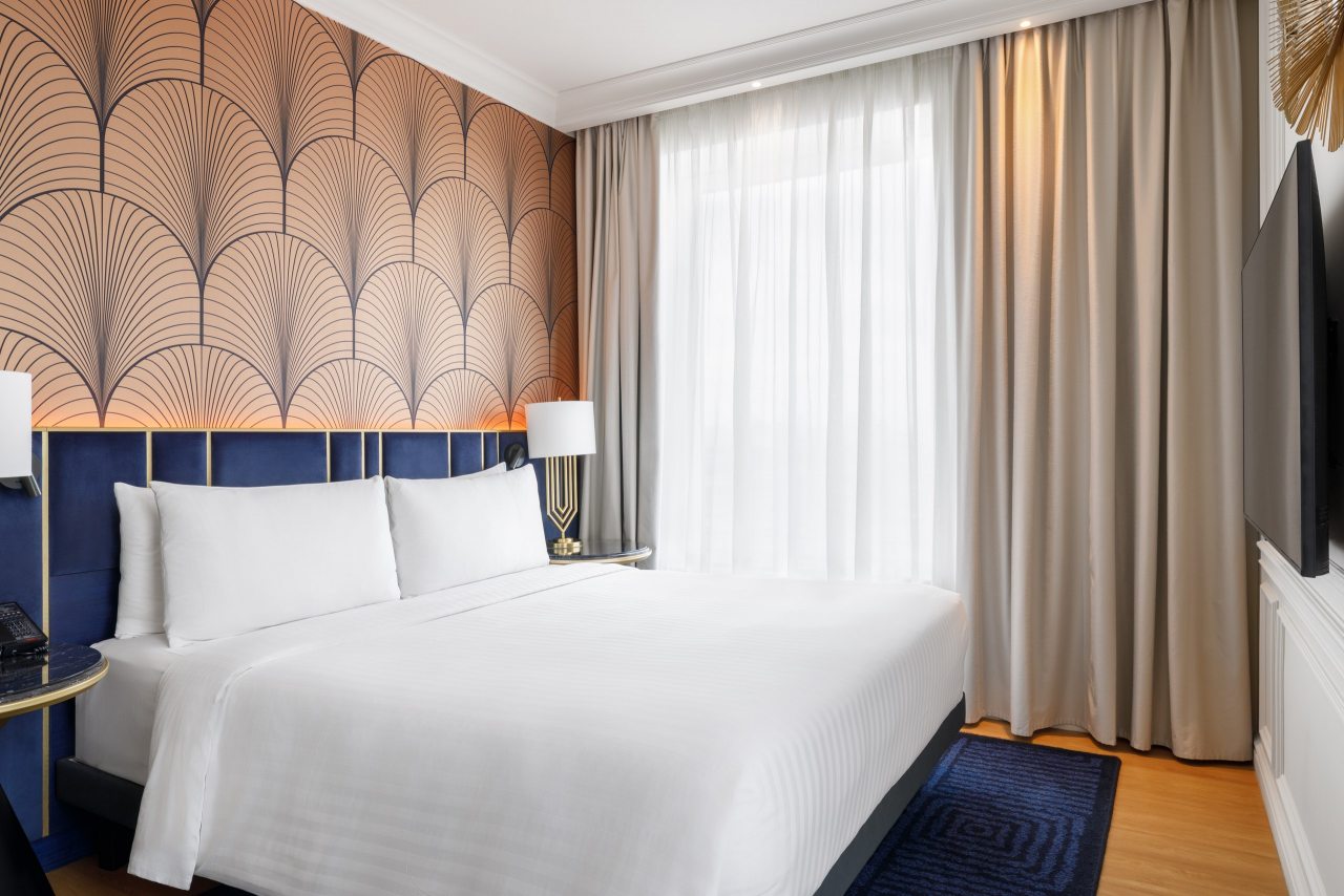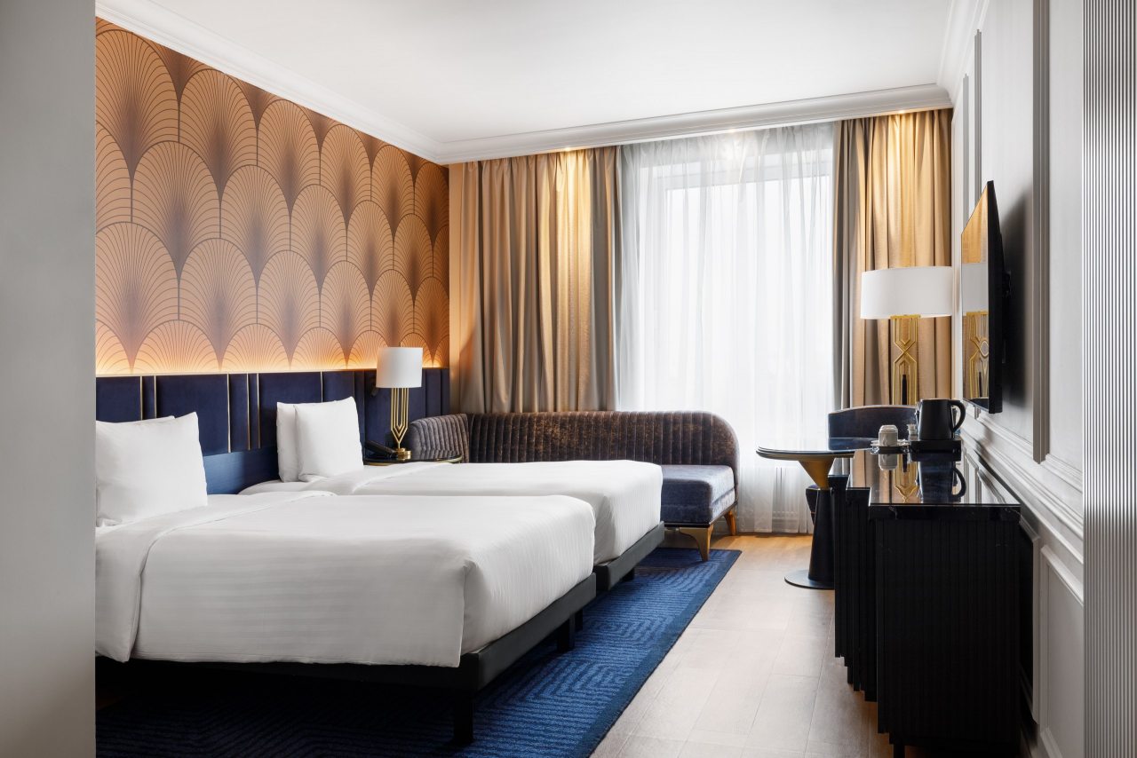 Останавливались с ребёнком в отеле в июле этого года.Номер делюкс на 11 этаже.При заселении выяснилось, что наш номер готов и мы смогли заселиться не в 15 час, а в 12, без всяких доплат, что было очень кстати. Было очень комфортно после прогулки по городу в жару вернуться в комфортный, прохладный номер, принять душ и отдохнуть. Спалось в номере замечательно, никаких звуков с улицы, тишина, поохлада, очень удобный матрас. В номере есть чайник, чай, кофе, что тоже удобно. Помимо кровати есть диван для отдыха днем. Завтраки превосходные, персонал очень вежливый, откликались оперативно на все запросы. В следующий раз планирую вернуться в этот отель. Рекомендую.Спасибо руководству и работникам отеля за прекрасный отдых.