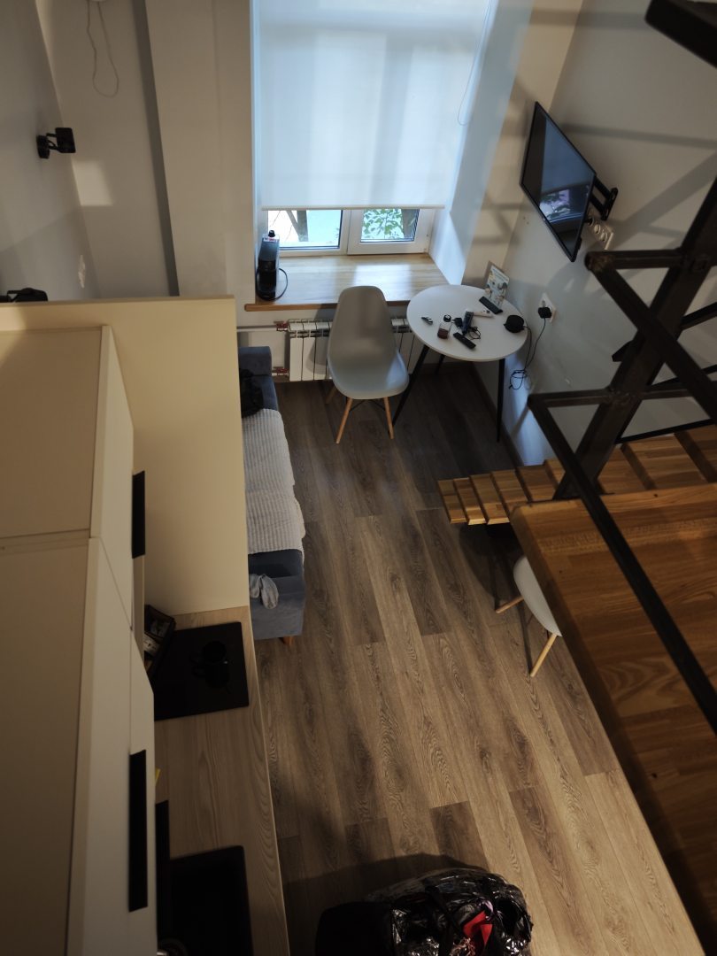 Из недостатков: сам по себе номер опасный) Я крайне не советую вам употреблять большое количество алкоголя, заезжать в пожилом возрасте или с детьми. И вот почему: очень крутая, высокая лестница с которой ни в коем случае нельзя торопиться. Иначе легко упасть и травимроваться. Мы так вообще умудрились ушибиться на подъёме. В общем не спешите. Помимо этого ограждение на втором этаже очень низкое и упасть вниз также не составит труда, поэтому в спальной зоне надо быть очень аккуратным (ну или сделать ограждения выше).