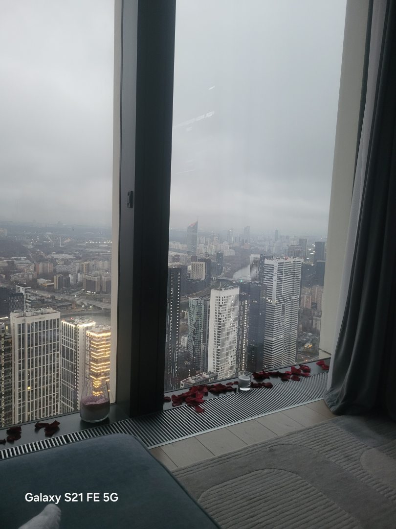 Вид просто потрясающий на Москву и реку. Чисто, комфортно, по стоимости совсем не дорого. На сайте не было нормальной фотографии с тем видом что в номере в живую. В башне Нева вид с окна самый лучший в Москве.