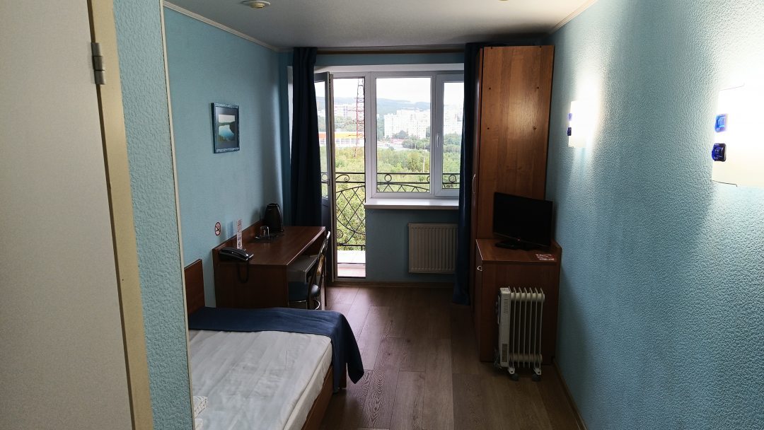 Отель хороший, находится правда далековато от центра, но это если кому-то нужно будет ездить, то будет не очень удобно. А в остальном, всё отлично. Номер стандартный: кровать, тумбочка, телевизор. В ванной сантехника работает, проведен интернет. Сотрудники вежливые, не грубят, приветливы со всеми гостями. Поблизости есть кафе и несколько продуктовых.