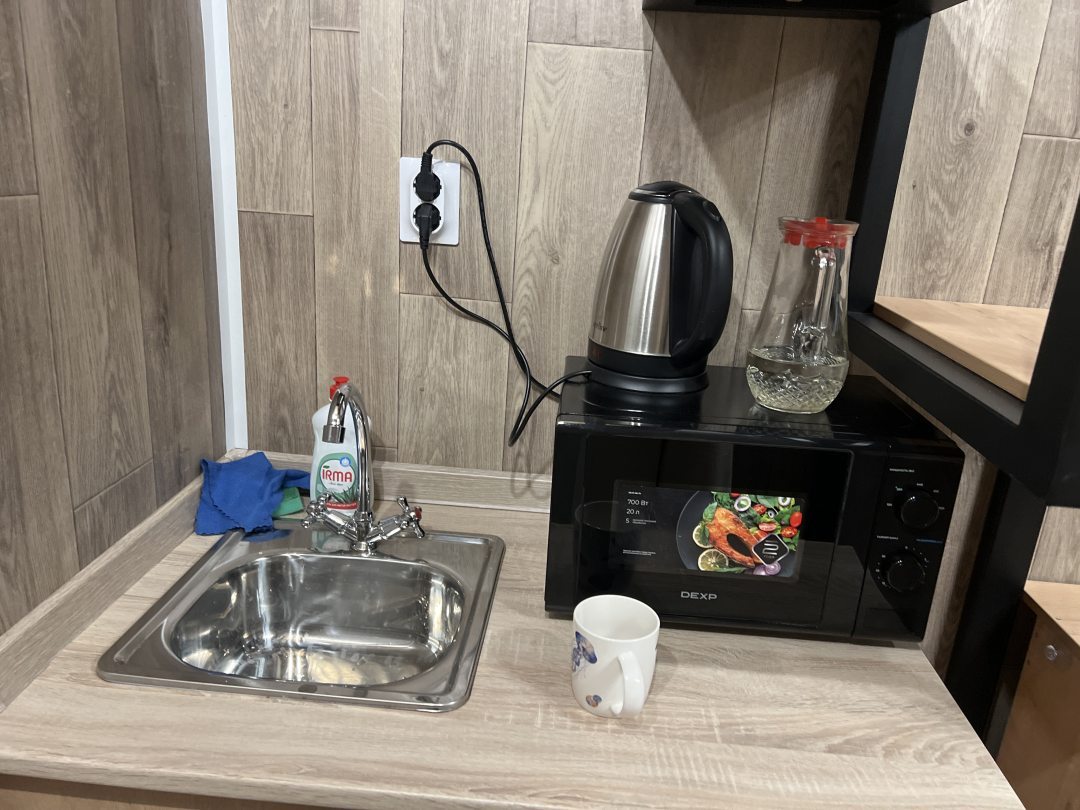 Классное место для ночлега на 1 ночь, для более длительного пребывания вдвоем плюс чемоданы - тесновато. Необычная идея сделать номер в виде каюты. Приятный и вежливый персонал. В номере есть микроволновка и чайник, на ресепшене фильтр, можно набирать воду. Фен по запросу. Санузел в номере. Также с утра немного перекусили - пакетик кашки-минутки, чай или кофе с кексиком. Удобно, когда ранний выезд. В этом же здании магнит, рядом Мурманск Молл, где можно поесть на фудкорте либо в ресторанчиках. В целом, все понравилось