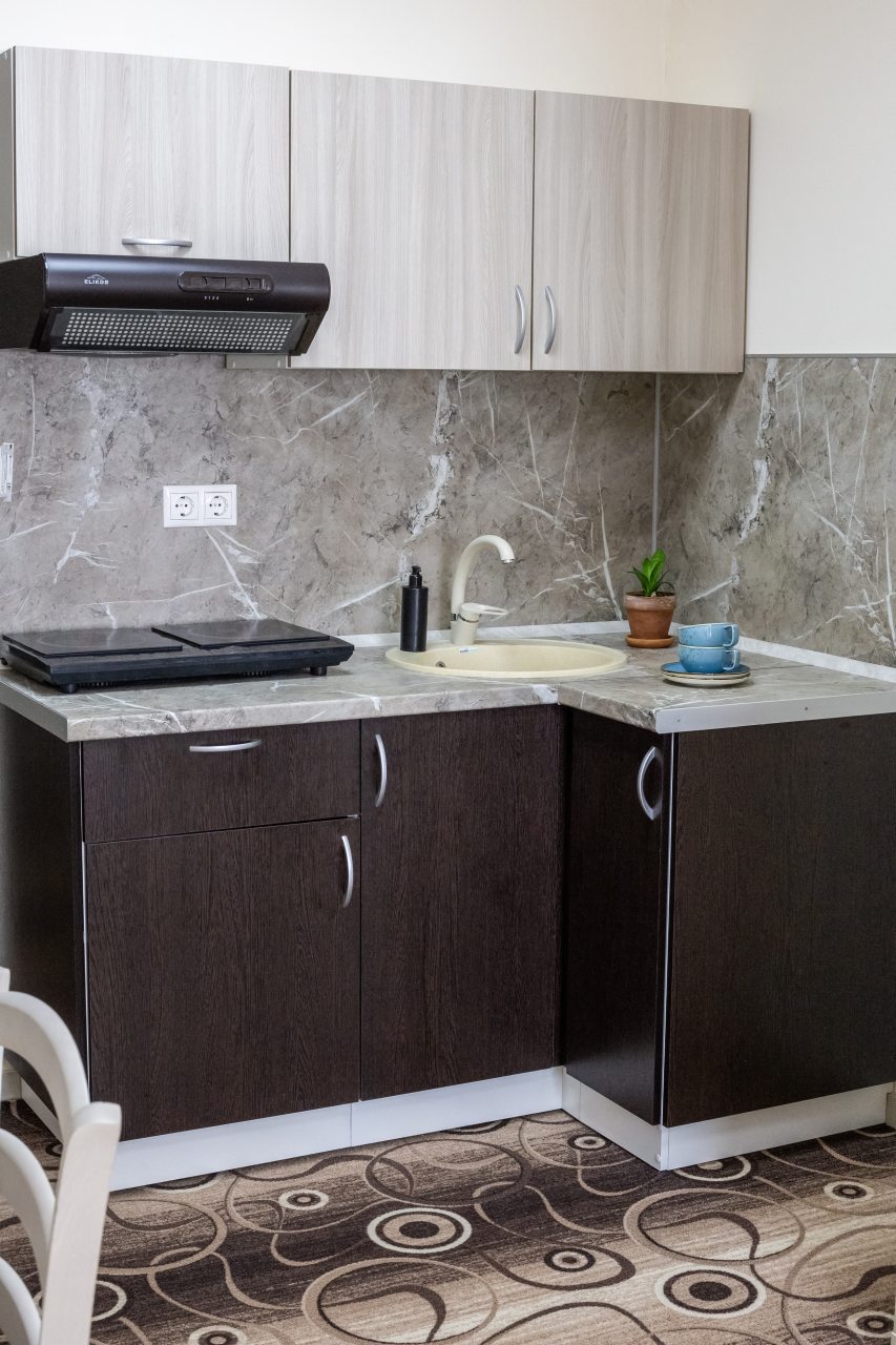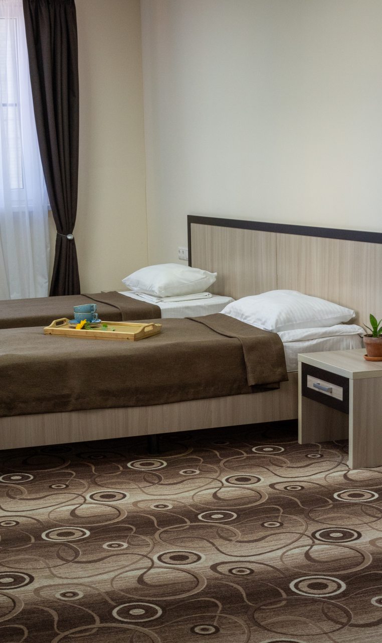 Для нас этот отель показался идеальным вариантом для проживания, потому что находится в центре села, цены за номер демократичные, а главное качество и сервис на высоте! Мы жили в стандартном номере, могу назвать его уютным, приятные оттенки в дизайне. У нас был свой небольшой холодильник и чайник. Полотенца чистые, без пятен и неприятного запаха. Поблизости есть кафешки, где можно перекусить.