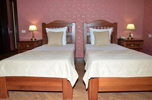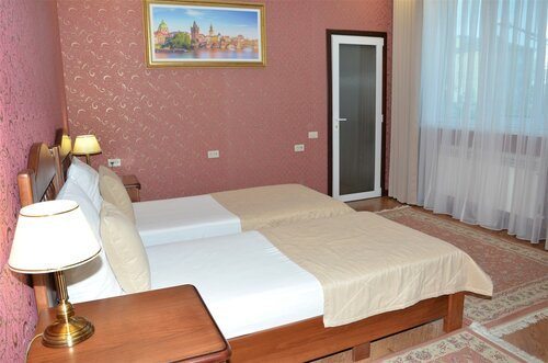 Хороший трехзвездочный отель. Цена соответствует качеству. Для Нальчика цена очень адекватная и даже щадящая. Номер небольшой, но для двоих отлично. Кровать удобная, мягкая. Есть своя ванная, комплект полотенец. В номере чистота. Рядом есть кафе. При отеле есть ресторан, обедали несколько раз. Очень вкусно.