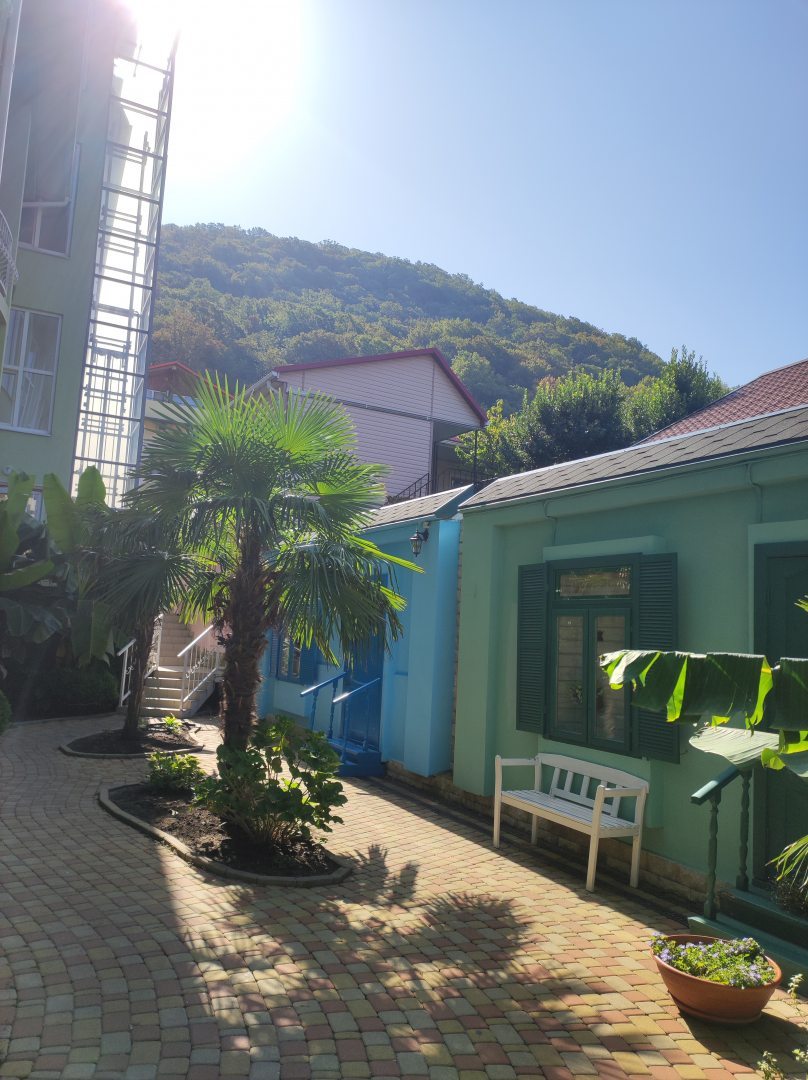 Отель превзошел все наши ожидания. Отличное расположение: 15 мин. до моря (не в гору), по пути рыночки, магазины «Магнит» и «Пятерочка». Территория отеля очень ухоженная, есть своя столовая, но мы ее услугами практически не пользовались, т.к. имеется большая кухня с холодильниками, газовыми плитами, большим количеством хорошей посуды. На территории множество мест со столиками, особенно впечатлило наличие мангальной зоны, за пользование которой не нужно доплачивать (3 больших мангала, рядом раковина, стол, всё необходимое). Спасибо за комфорт и уют! Рекомендуем всем, кто собирается на отдых в этом месте!