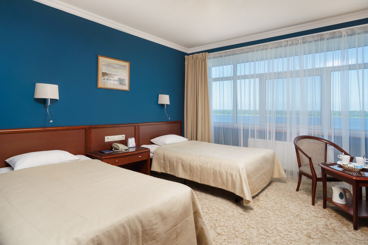 Отель расположен на берегу Волги. Выход из гостиницы прямо на набережную. До Кремля идти минут 15 в гору. Полезно для здоровья. Обслуживание номеров отличное, завтраки вкусные, голодными не останетесь.