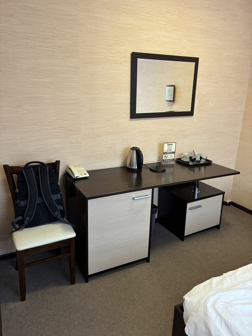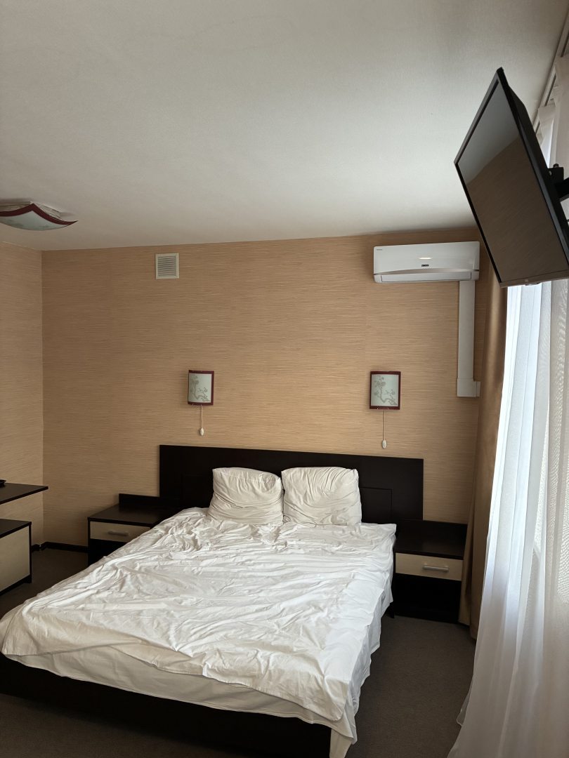 Вся мебель добротная, без следов износа, кровать удобная, белье свежее и чистое. В номере можно было разместить все вещи, и оставалось много свободного пространства. Душевая кабина чистая, вода горячая и без перебоев. Порадовало наличие кондиционера, особенно в жаркие дни. Интернет работал хорошо, скорость стабильная.