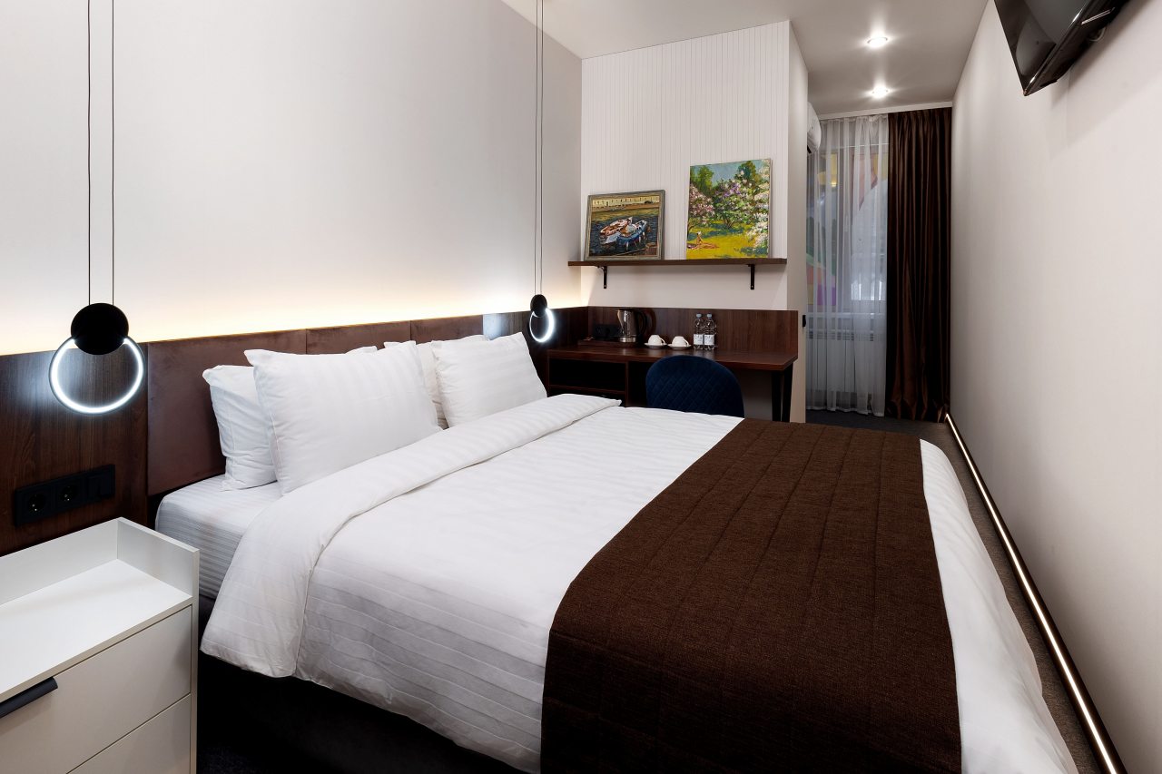 Расположение отеля просто бомба. От пешеходной улицы несколько шагов, от Кремля несколько домов. Напротив недорогая столовая. В номере есть одноразовые тапочки и мыльные принадлежности. Чисто и аккуратно. Очень рекомендую.