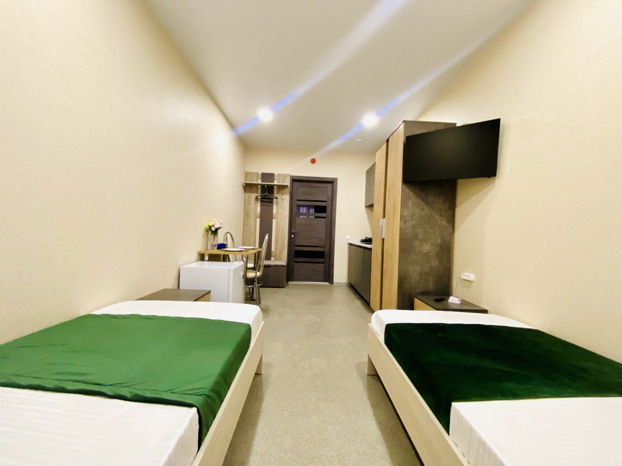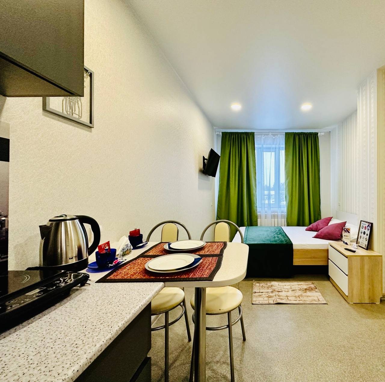 Приятный апарт-отель. Квартиры чистые, светлые. Наша была замечательной. В не было свежо и комфортно. Ее оснащение порадовало, была предложена хорошая мебель и рабочая техника. Здорово, что была небольшая кухня, так как пару раз мы ей воспользовались даже. Постельное белье было свежее, а матрас вполне удобный.
