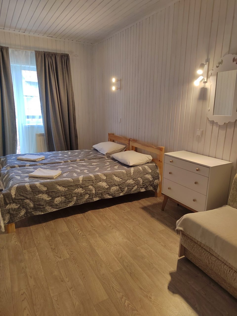 Чистота и красота. Отмечали тут мамин юбилей. В поселке, то есть. Остановились в этой гостинице. Нас было несколько человек, арендовали 3 номера. Бронировали заранее. Всё получилось. Приветливый персонал. Смогли с удобствами и рядом разместиться. Предусмотрено место для шашлыка, с мангалом, пригодилось.