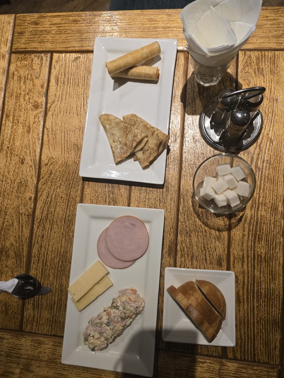 Из недостатков: цены в ресторане не соответствуют качеству блюд - либо нужно понизить ценник, либо улучшить качество блюд. В номере отсутствовал даже минимальный набор приборов(стаканы).