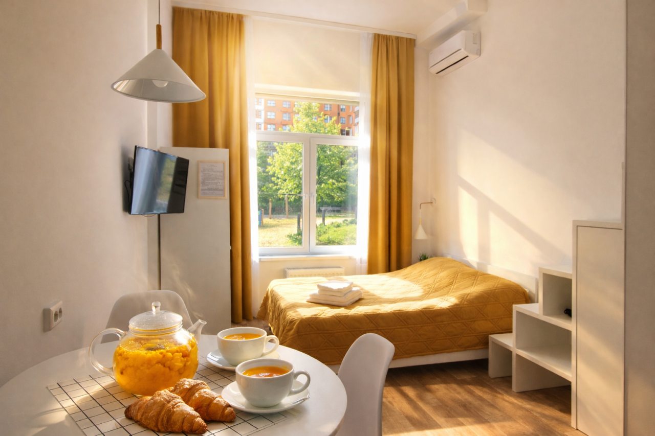 Прекрасные, безупречно чистые апартаменты-студии созданы для приятного проживания. В наличии все удобства, чтобы гость ощущал себя как дома и мог с комфортом разместиться. Качественное обслуживание, удаленная поддержка по любым вопросам, услуги горничной. В целом, это достойный и функциональный выбор для приезжих.