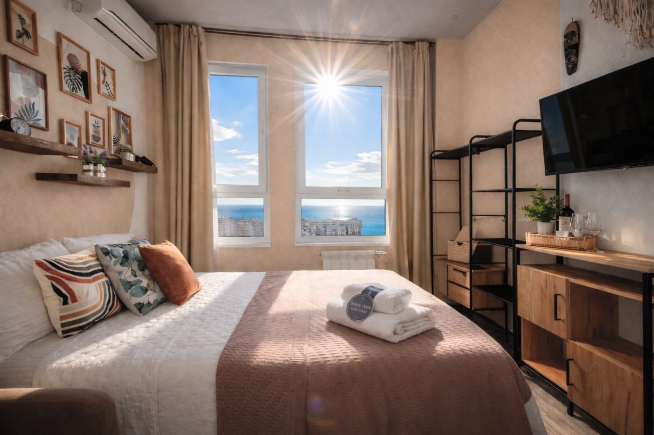 Выбрали жилье в Южном районе Новороссийска. Панда отличное место. Район новых ЖК, инфраструктура отличная, магазины, детские площадки, зоны отдыха со столиками под навесами, пешком до пляжа Алексино минут 20 не спеша. В апартаментах всё новое, посуда, мебель, постель. Очень стильно, красиво, современно. Администратор всегда на связи, заселение и выезд бесконтактно. В номере есть плита, микроволновка, весь набор посуды для готовки. Чистота почти идеальная. И тишина, соседей как будто нет совсем. А они были. Рекомендую это место .