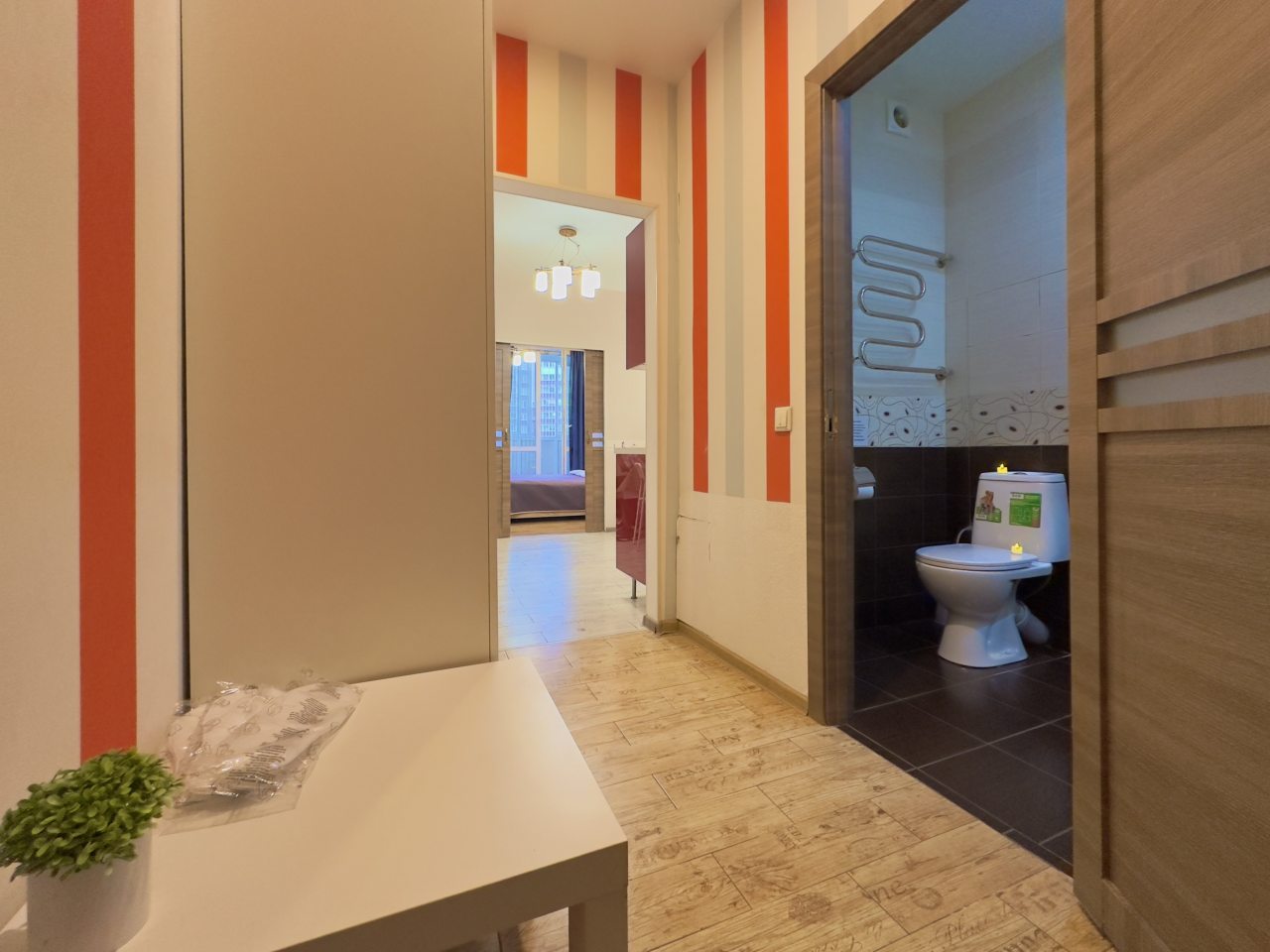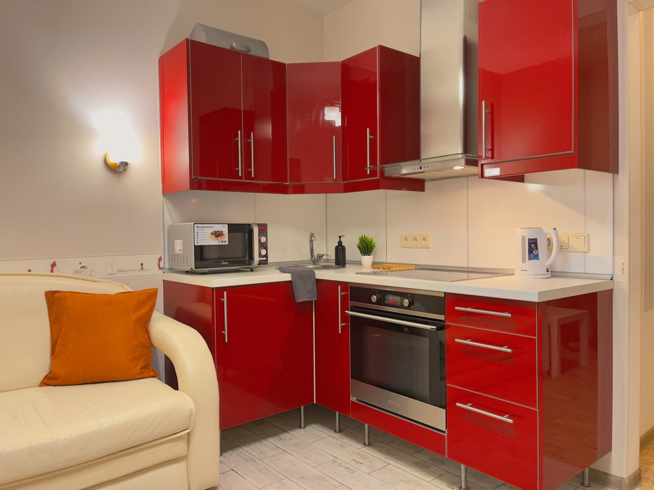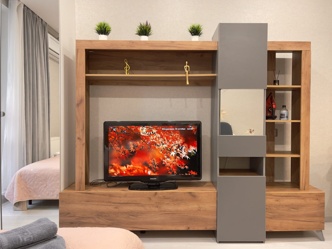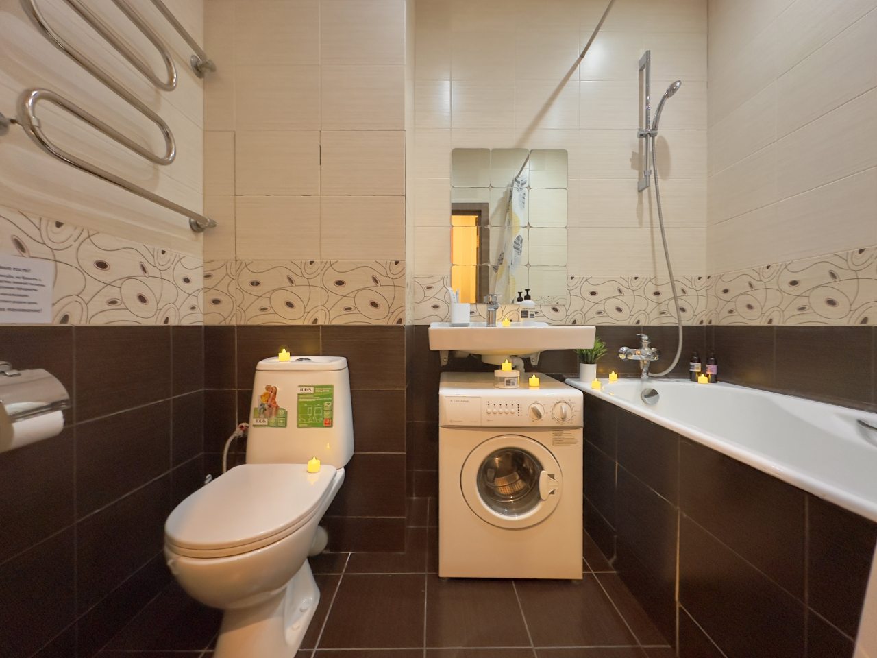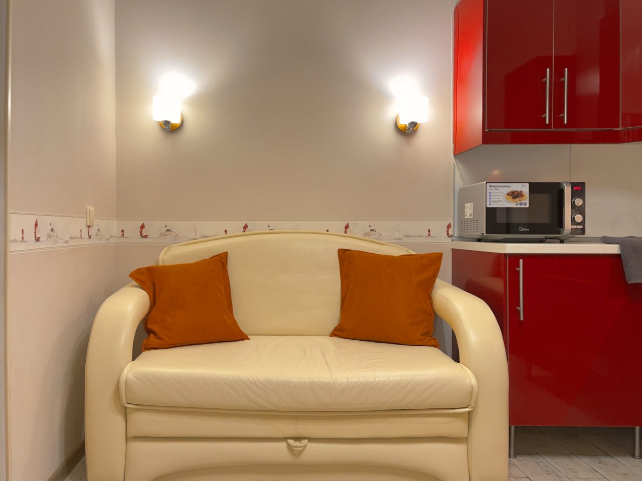 Студия небольшая, но нам она понравилась. С кухонькой, кроватью, ванной комнатой. Оставили полотенца и средства гигиены, очень выручило, поскольку ничего такого мы с собой не брали. Техника вся исправная, можно вести полноценный быт. Место тоже хорошее, есть и аптеки, и магазин, еще и транспорт ходит. Жилось комфортно.