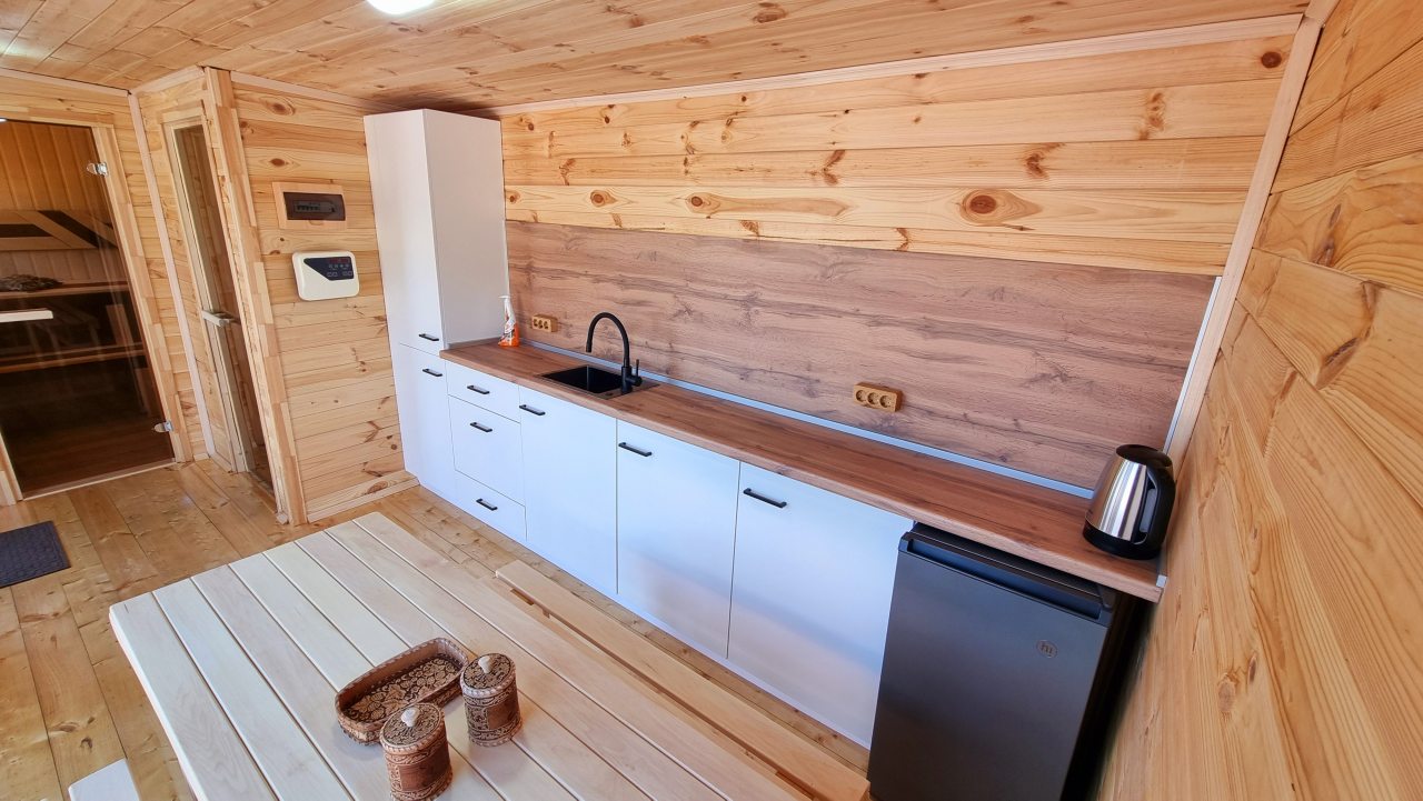 Отдых в таунхаусе мы организовали на большую компанию. Всем участникам нашего заезда понравилась такая идея и коттедж конечно оценили все положительно. Современный интерьер, качественная техника, наличие своей кухни – преимуществ много. Но самое заметное, что особенно актуально было, так это панорамная крыша. На ней организована зона для загара и плюс есть своя баня. Шикарно!
