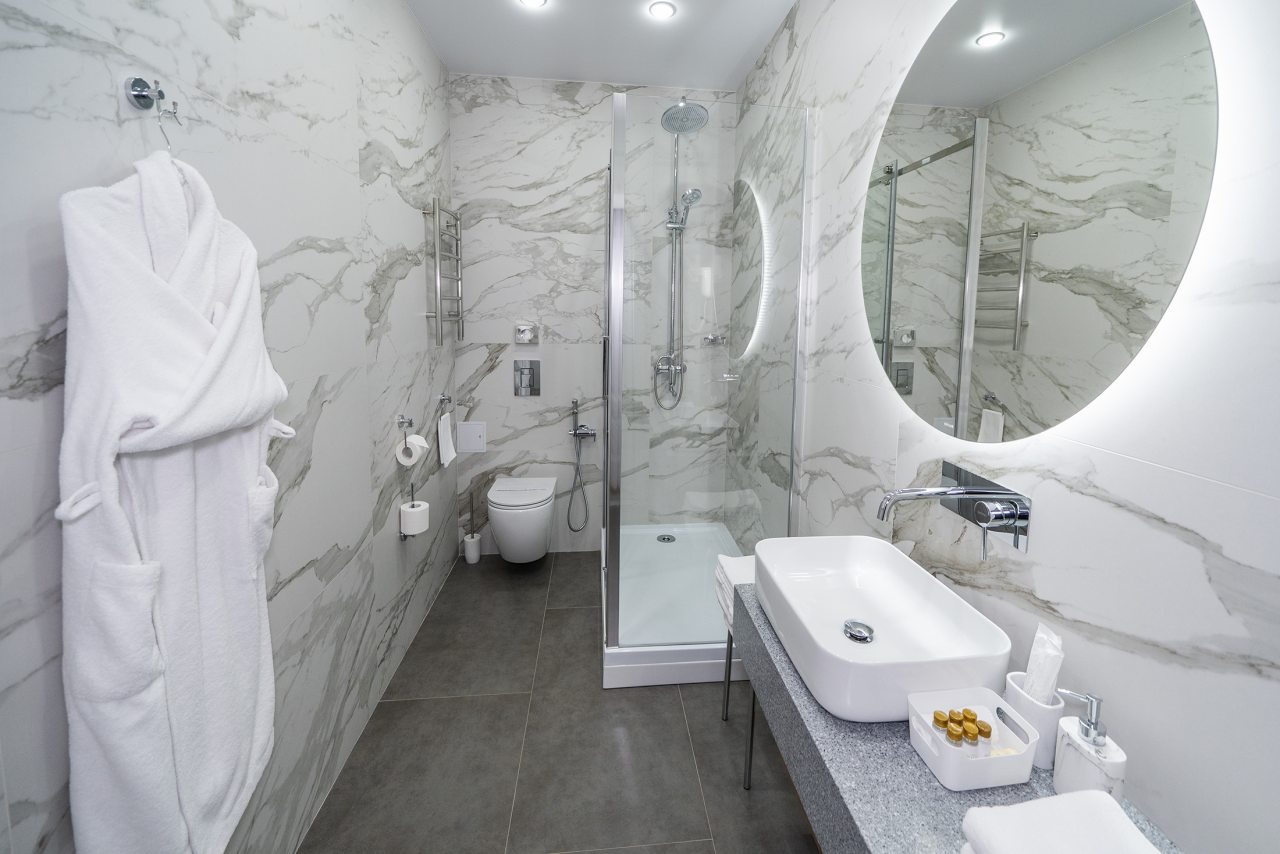 Телевизор работает без тормозов, каналов море, можно целый день смотреть. Интернет стабильный, ни разу не завис. Ванная комната чистая, всё на своих местах, ничего не валяется. Понравилось, что звукоизоляция хорошая — соседей не слышно, как будто один живёшь. В целом, ощущение, что попал в место, где о тебе позаботились.