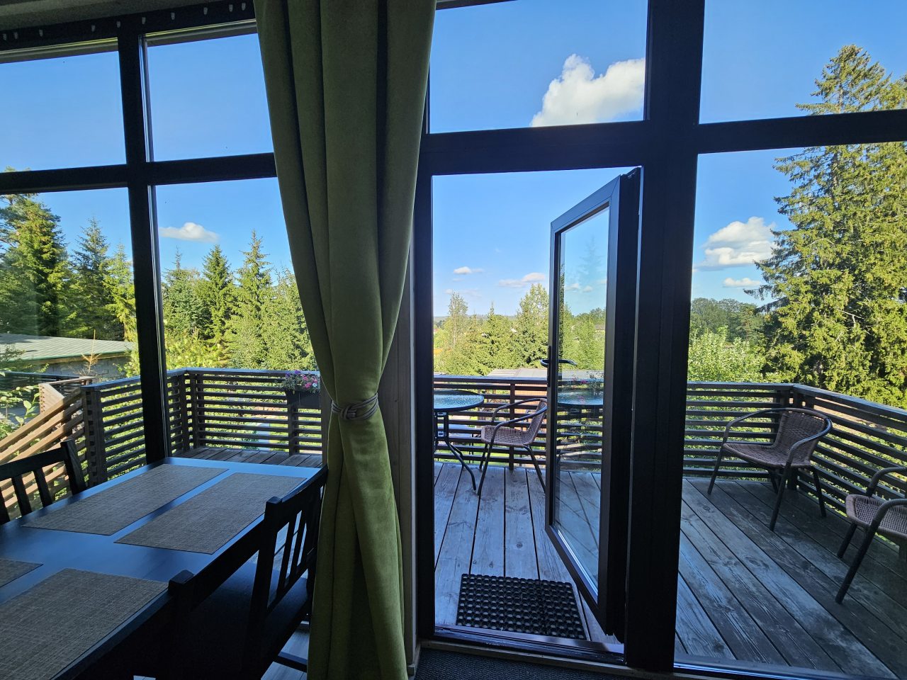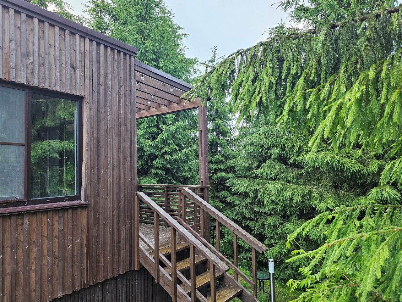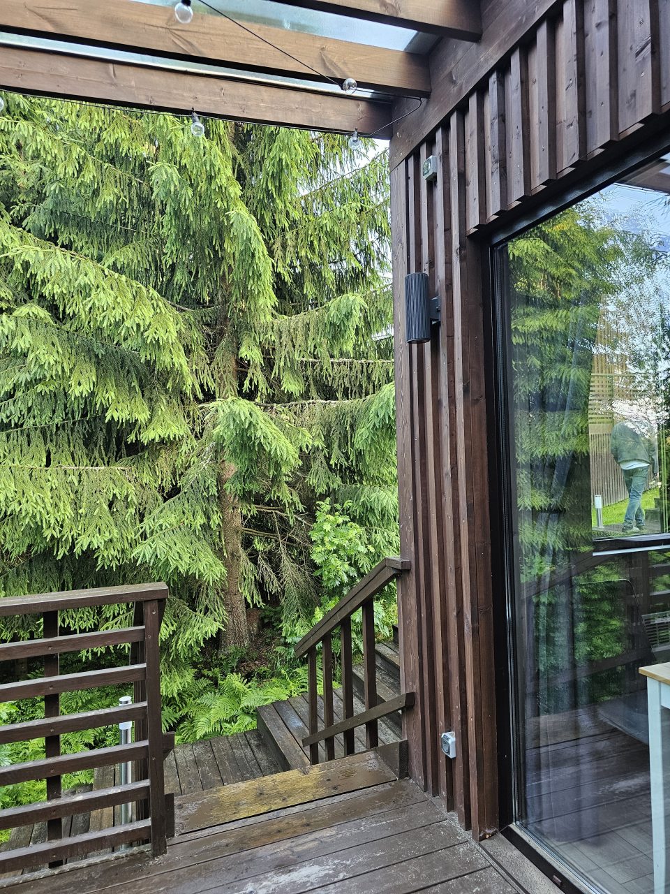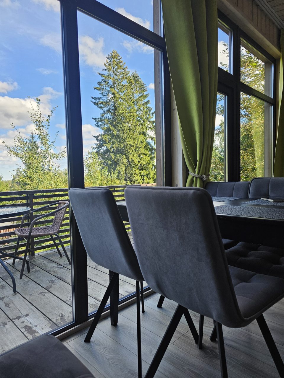 Дом в лесной черте, добрались легко, навигатор привел точно, да и дорога неплохая. Приятно впечатлила архитектура коттеджа, очень практично и виды из панорамного окна симпатичные. Отдых получился романтичным и расслабляющим. Конечно, с удовольствием бы при возможности купил такой дом.
