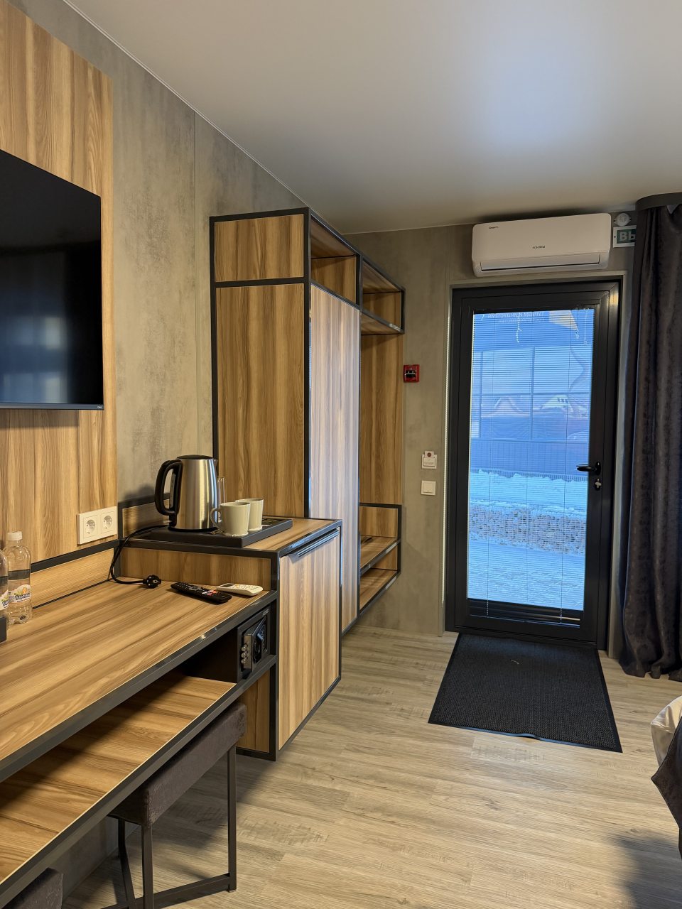 Отличная концепция придорожного отеля. Все новое, чистое. Номер большой, современный дизайн.Приветливый администратор. Понравилось, рекомендую.