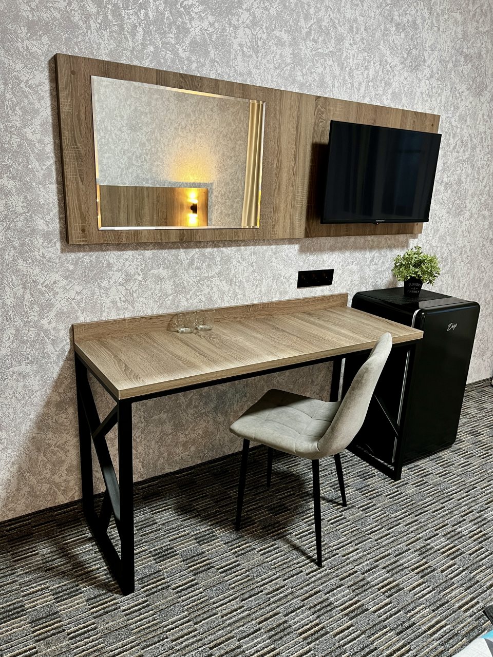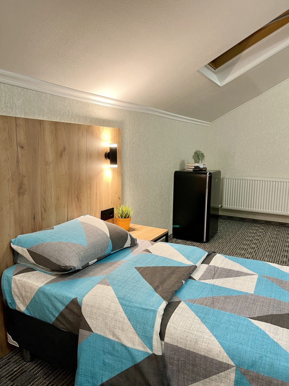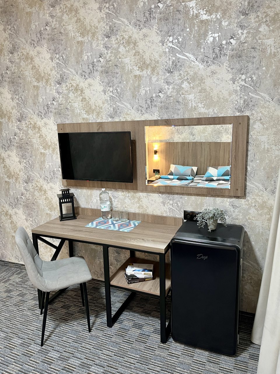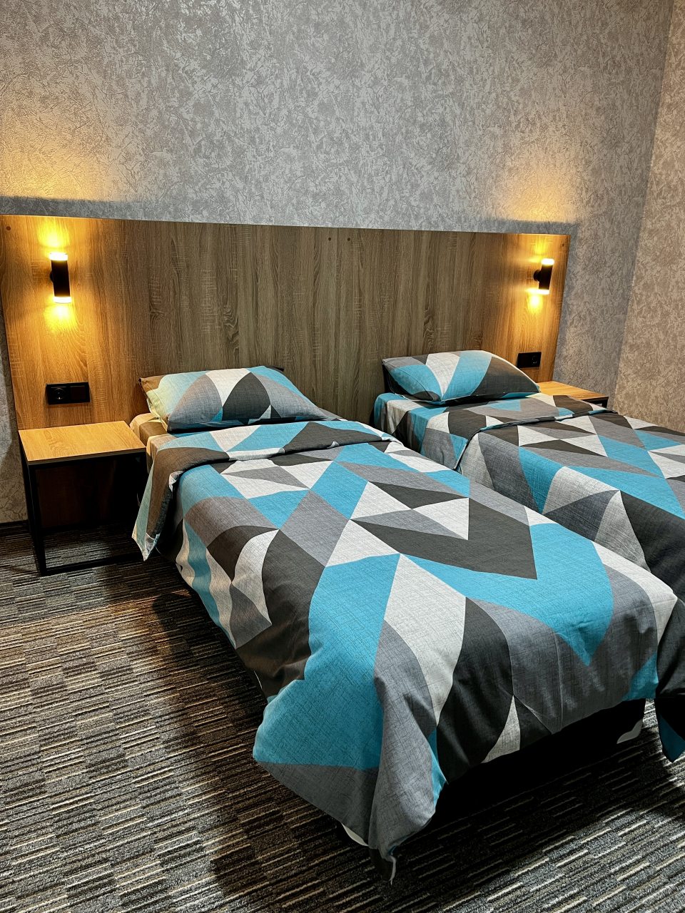 Отличный отель. Были здесь проездом, останавливались всего на 2 суток. Снимали двухместный номер. Номер с хорошим ремонтом и удобной мебелью, чистый, ванная комната удобно обустроена. Все в отлично состоянии. В отеле есть общая кухня, где можно погреть пищу и перекусить в удобной столовой. Бесплатно предоставляется интернет. Администраторы и персонал вежливые.