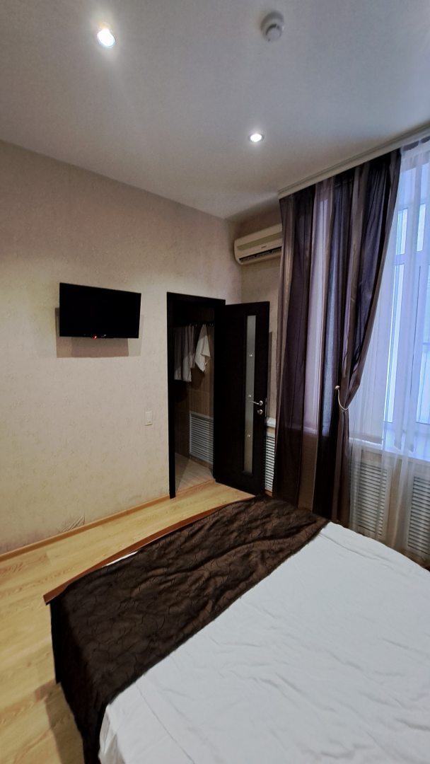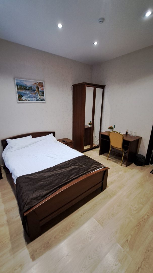 Отель размещен на первом этаже, пяти этажного жилого дома. Находится в относительной близости от центра, (15 мин. спокойной хотьбы). Очень вежливый и услужливый персонал. Номер просторный, чистый, в котором имеется телевизор, холодильник и вся необходимая мебель для комфортного проживания. Удобная кровать с чистым постельным бельём. Предоставляются гигиенические принадлежности и полный комплект полотенец. В отеле есть кухня-столовая, в которой в наличии вся кухонная утварь и посуда. Можно разогреть продукты и воспользоваться столиками в столовой. В проживание включен завтрак, с несколькими вариантами блюд на выбор.