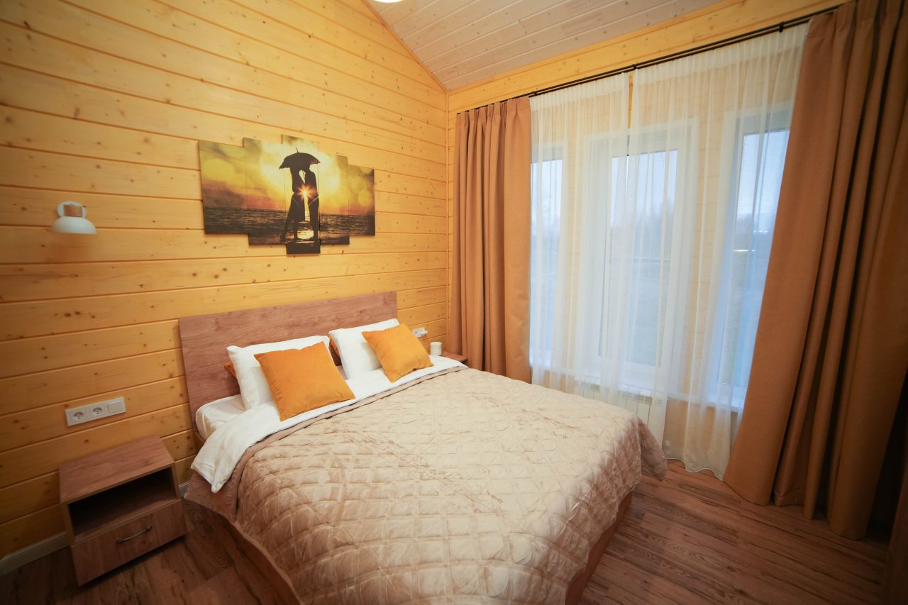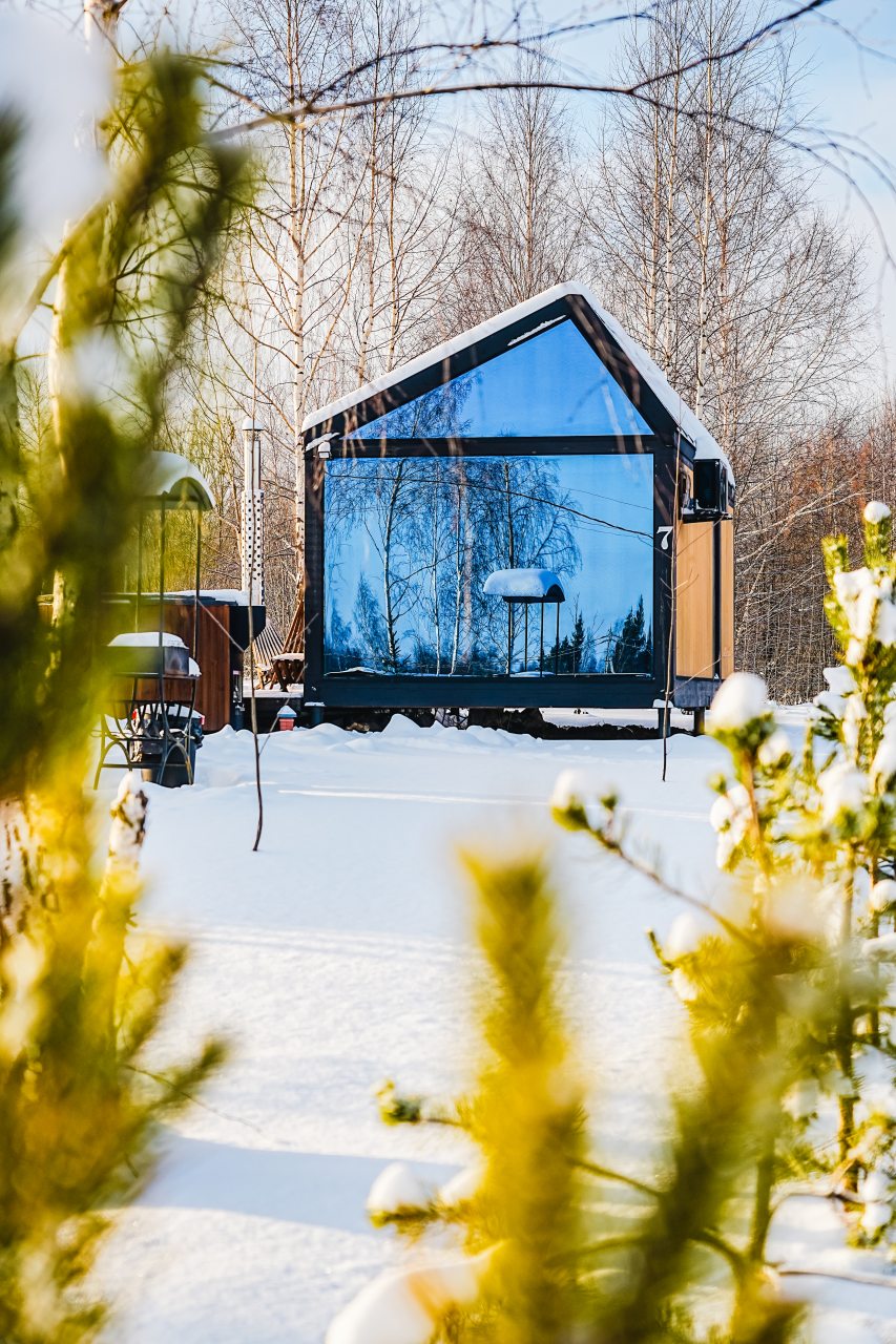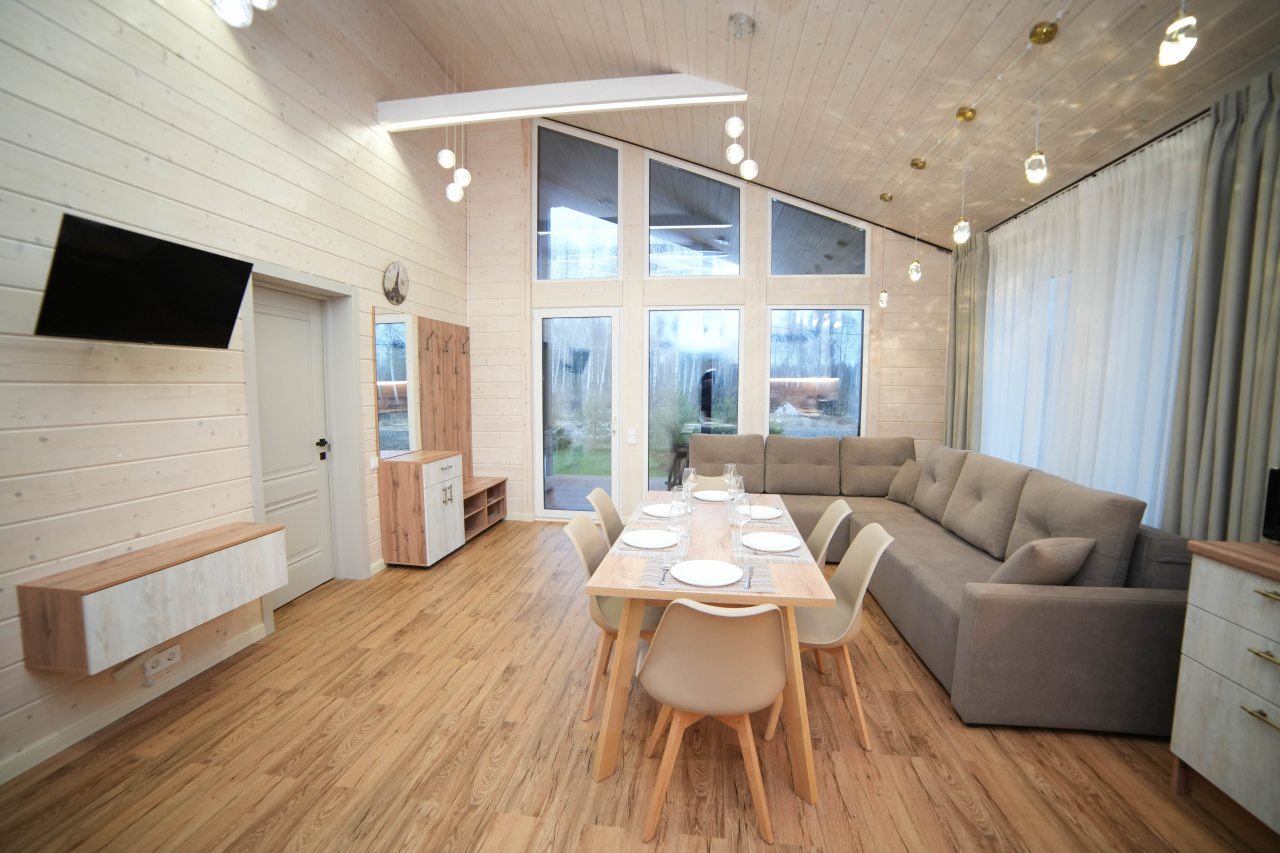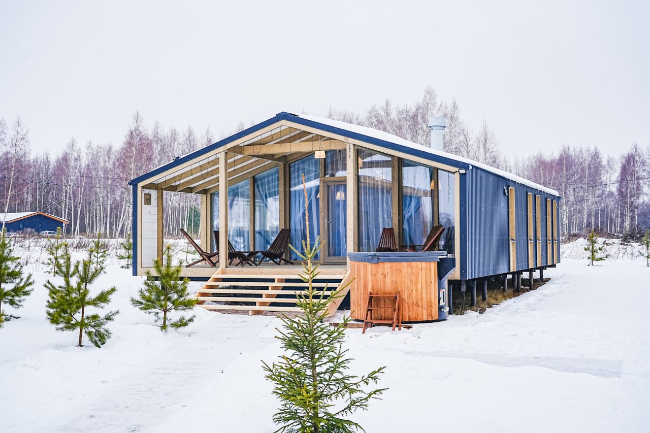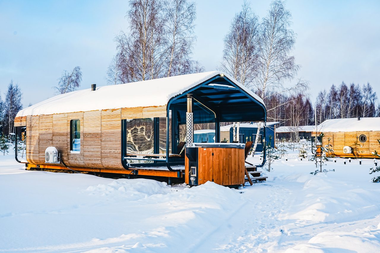 Внутри 2 спальни, как мы и хотели, одна для детей, вторая для нас. Красиво выставлен свет, есть своя кухня и обеденная зона. Можно использовать купель, которая расположена прямо рядом с домом. Всё очень понравилось, советуем!