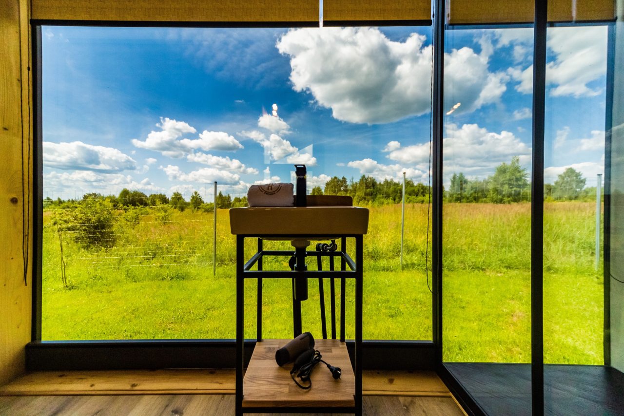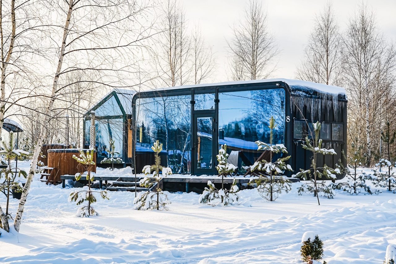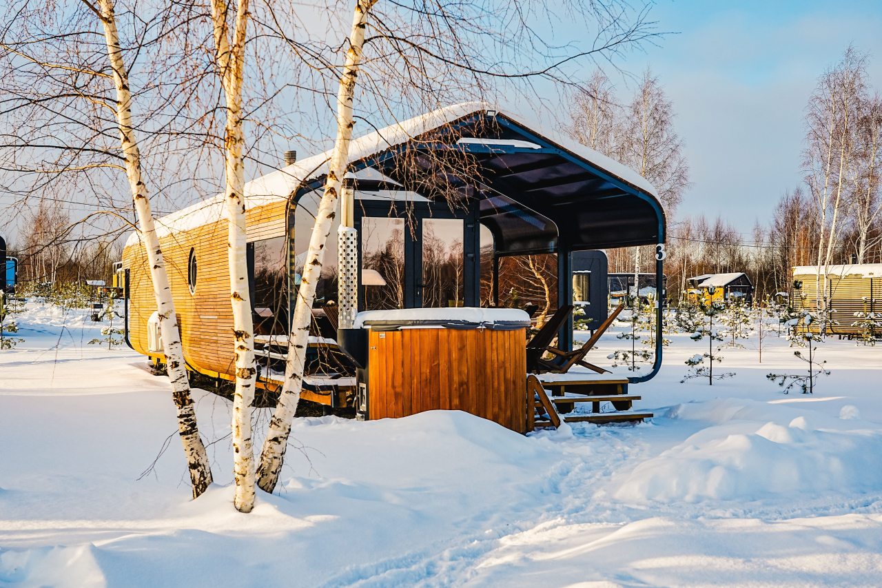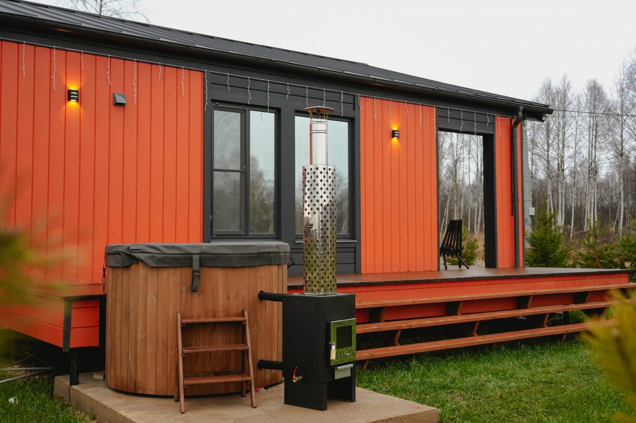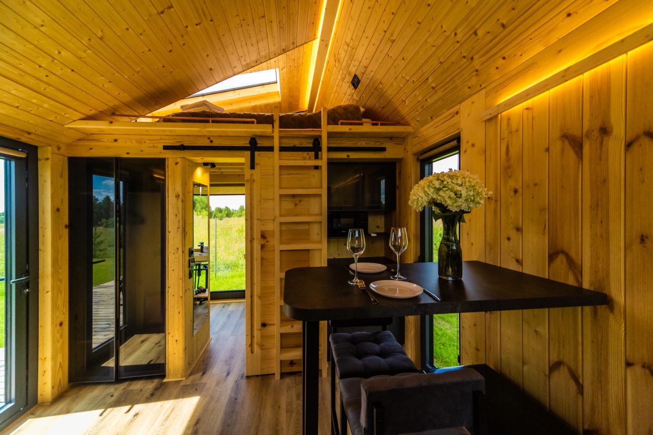Внутри 2 спальни, как мы и хотели, одна для детей, вторая для нас. Красиво выставлен свет, есть своя кухня и обеденная зона. Можно использовать купель, которая расположена прямо рядом с домом. Всё очень понравилось, советуем!