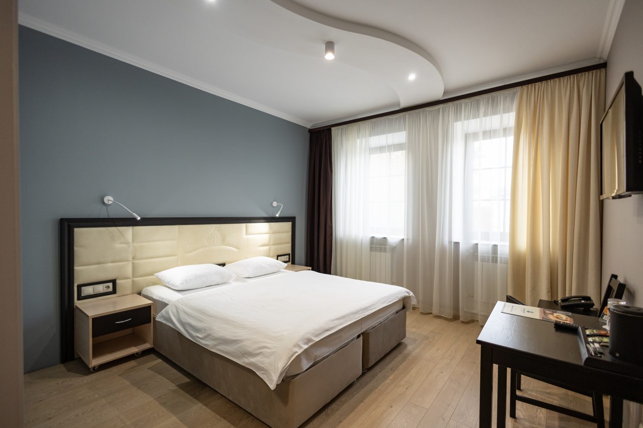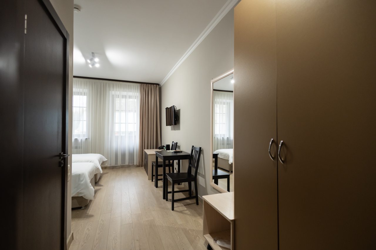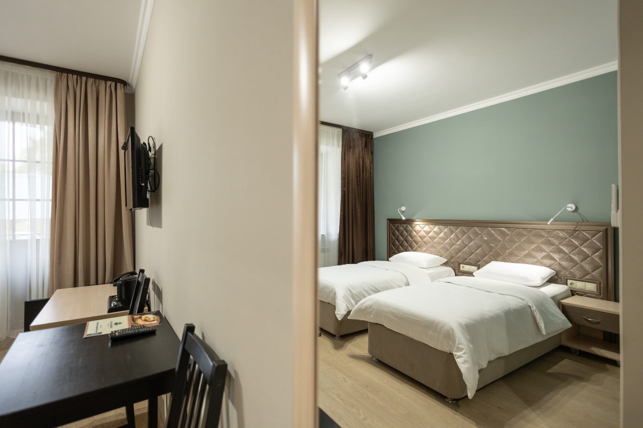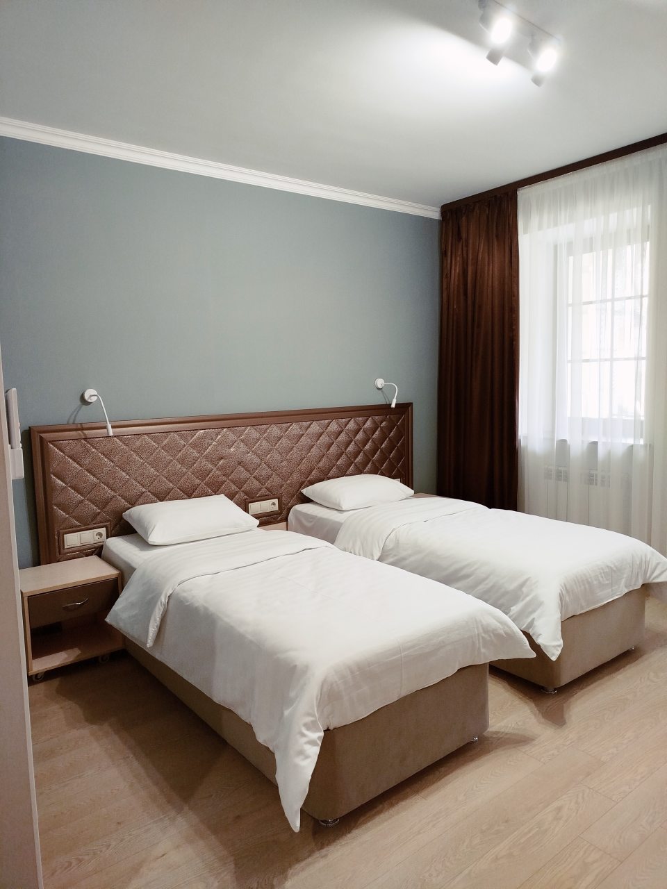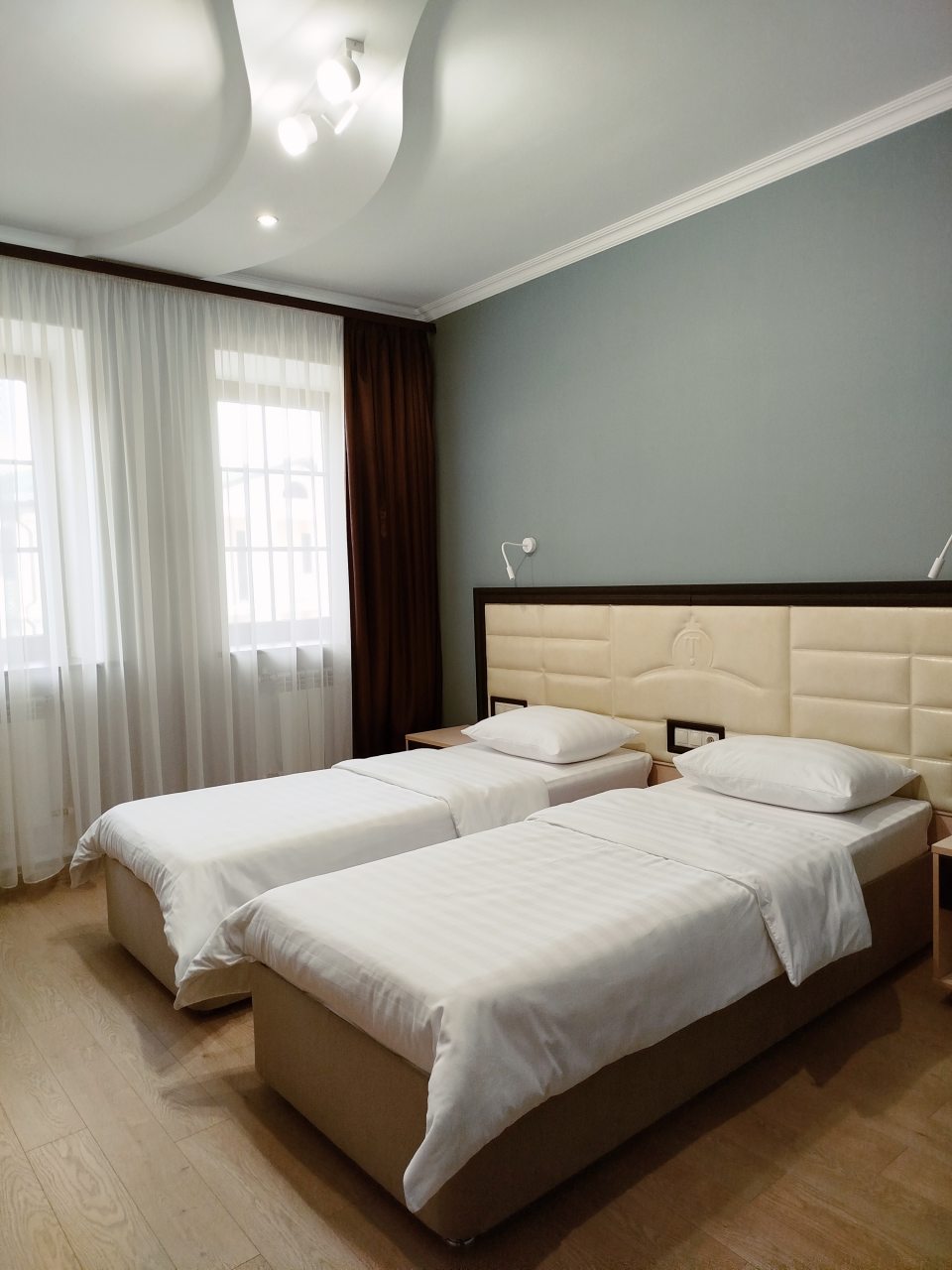 Останавливались в этой гостинице первый раз, номер Стандарт с раздельными кроватями на одну ночь. Понравилось все: отличное расположение - в самом центре города, все находится в пешей доступности . Приятная гостиница, чисто, очень доброжелательный персонал. Питание хорошее, пусть и не "все включено", но завтрак очень сытный и вкусный. Перед гостиницей - ресторан ПроХинкали, так что проблемы приятно провести время и отдохнуть от беготни нет. Вернемся сюда однозначно.