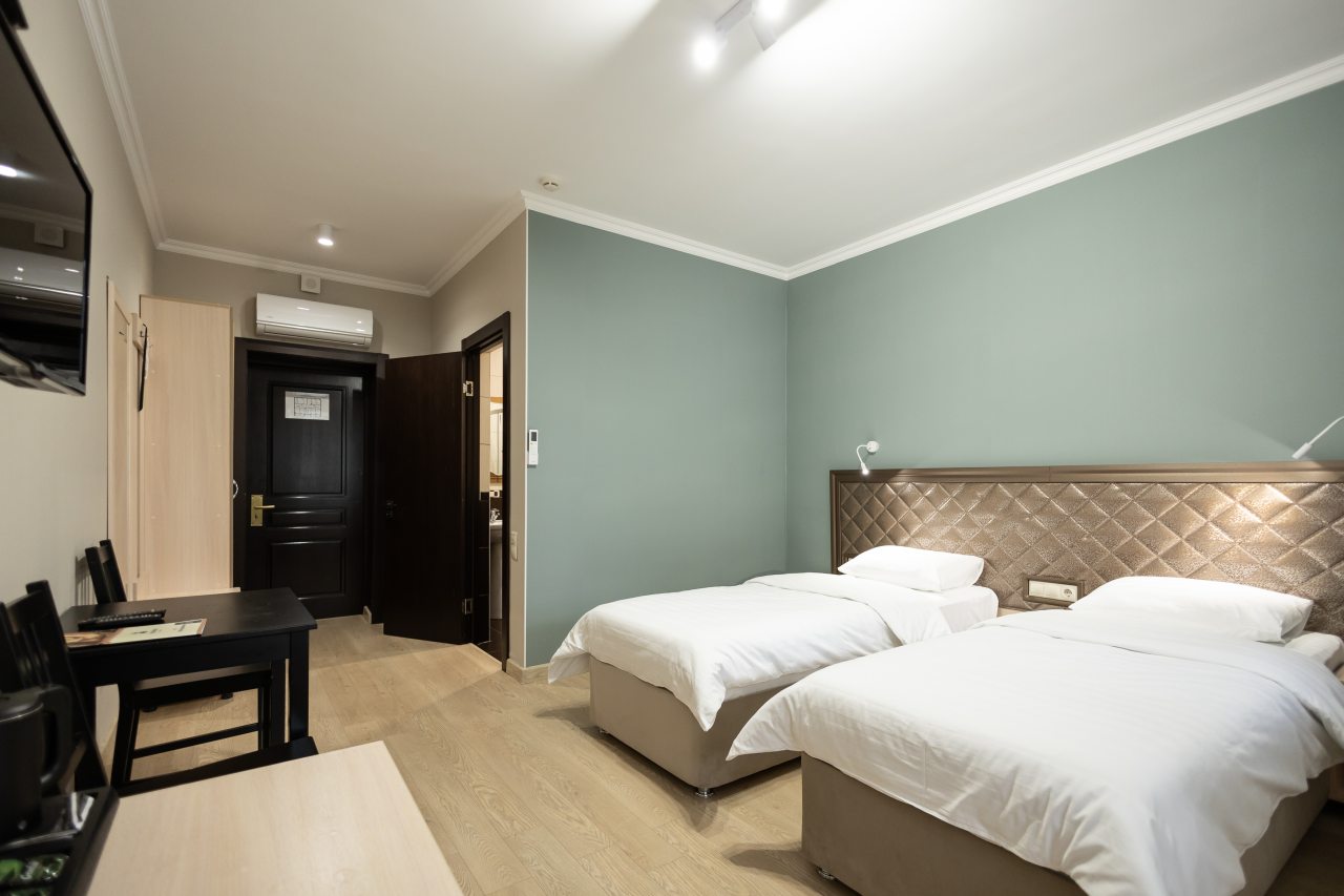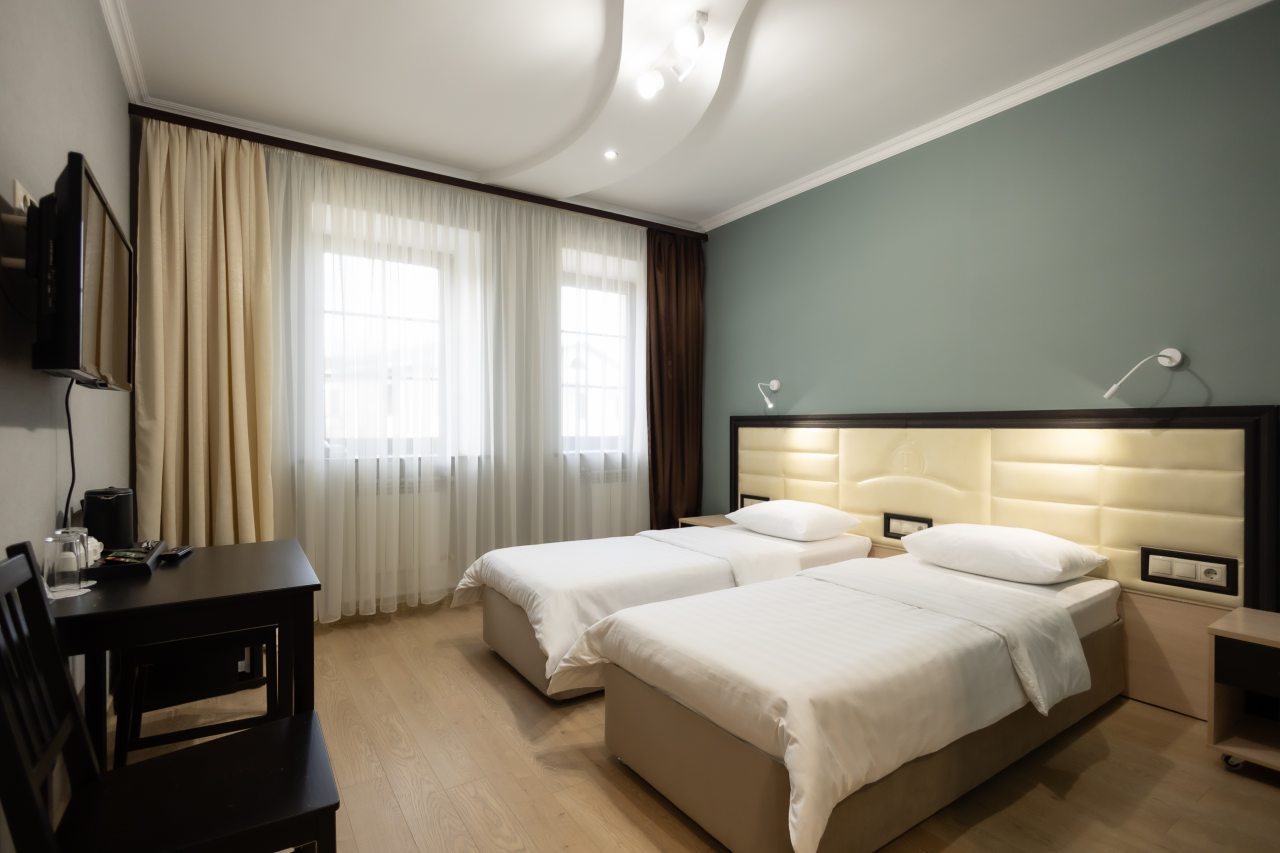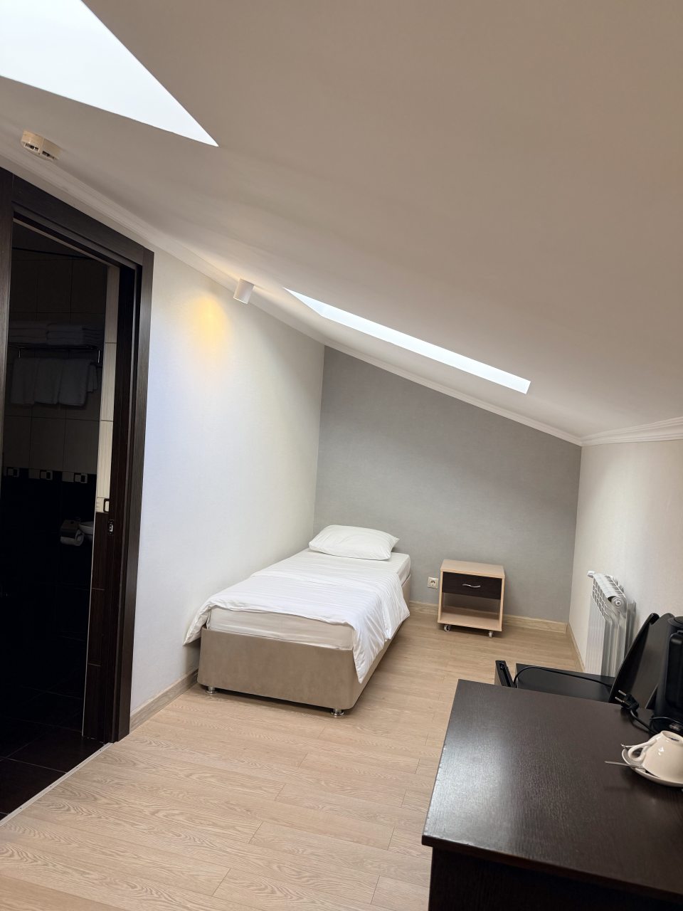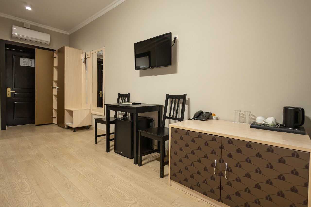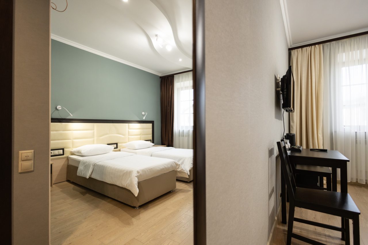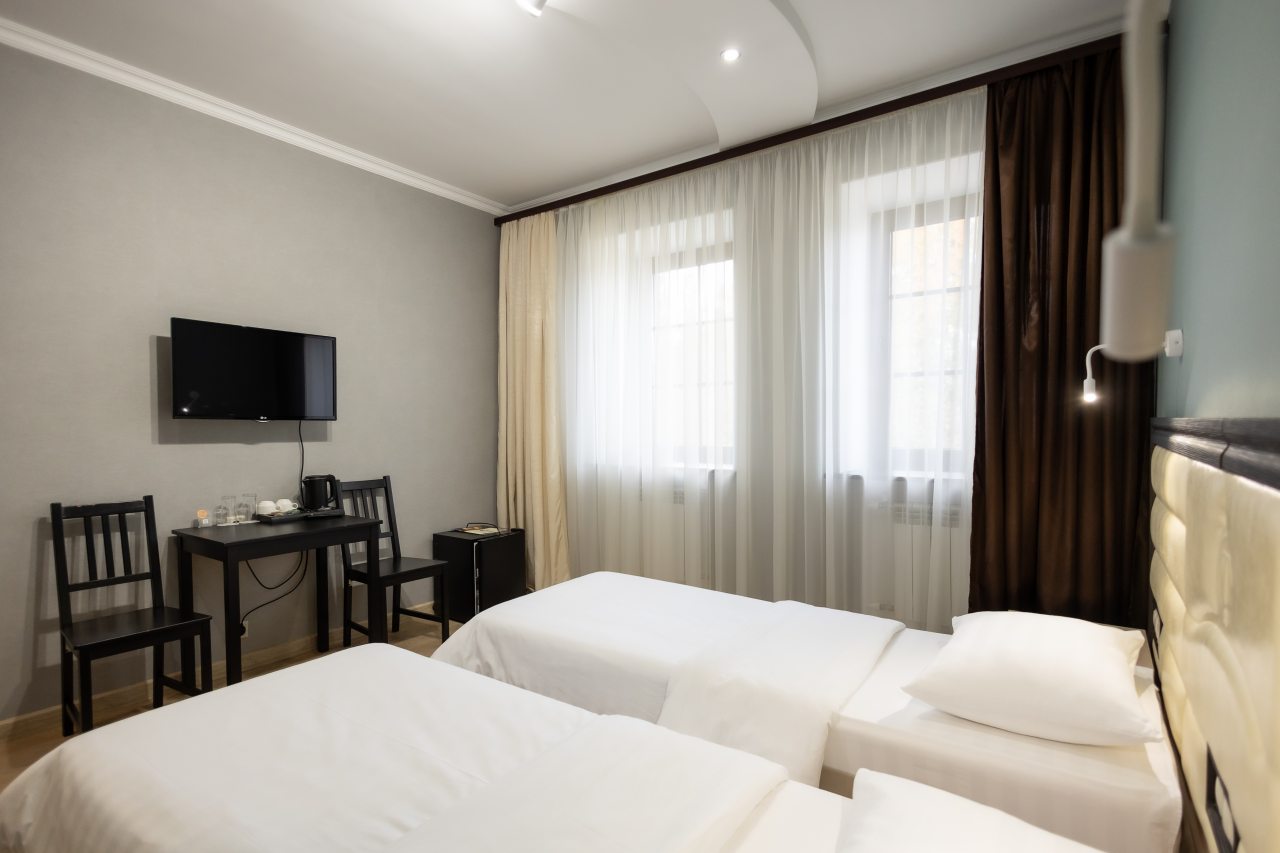 Останавливались в этой гостинице первый раз, номер Стандарт с раздельными кроватями на одну ночь. Понравилось все: отличное расположение - в самом центре города, все находится в пешей доступности . Приятная гостиница, чисто, очень доброжелательный персонал. Питание хорошее, пусть и не "все включено", но завтрак очень сытный и вкусный. Перед гостиницей - ресторан ПроХинкали, так что проблемы приятно провести время и отдохнуть от беготни нет. Вернемся сюда однозначно.