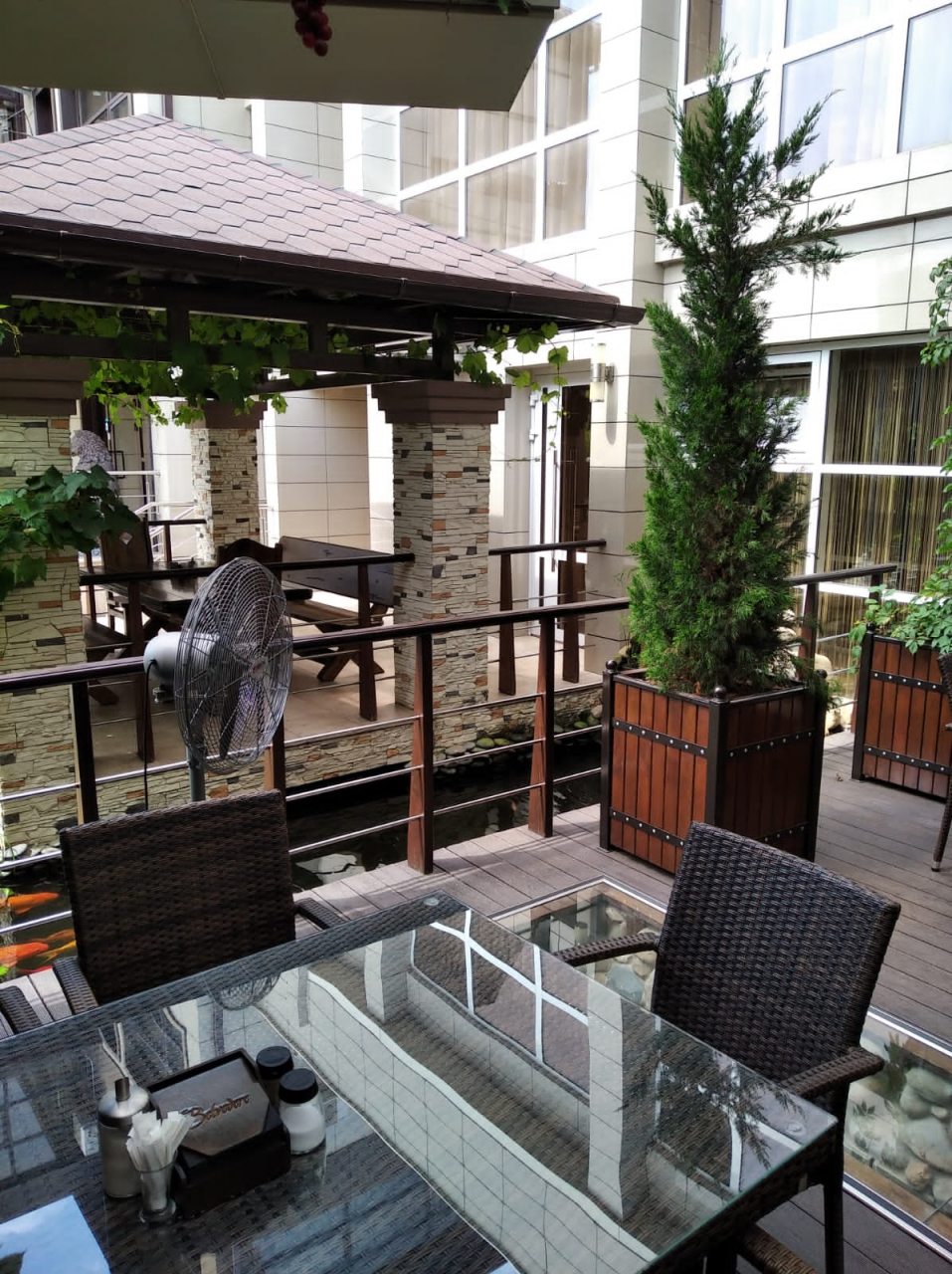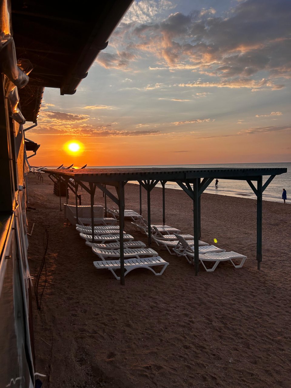Нам отель понравился, он находится почти в центре поселка Пересыпь. Рядом много кафе и ресторанов. Во дворе отеля есть собственная закрытая парковка, на которой мы в том числе оставляли и свой автомобиль. Бассейн на территории работает. Это первая линия от Азовского моря, поэтому до пляжа можно дойти также за несколько минут. При отеле работает собственный ресторан с хорошим меню. Отличный вариант для семейного отдыха.