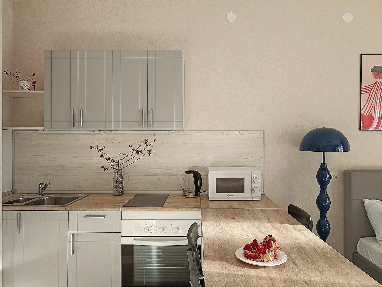 Заехала в апартаменты после долгой дороги и была приятно удивлена. В жизни выглядят еще лучше, чем на фото. Очень понравилось, что есть абсолютно все, что могло бы понадобиться вдалеке от дома, а именно — возможность с комфортом искупаться, постираться, приготовить еду и отдохнуть на шикарной мягкой кровати.