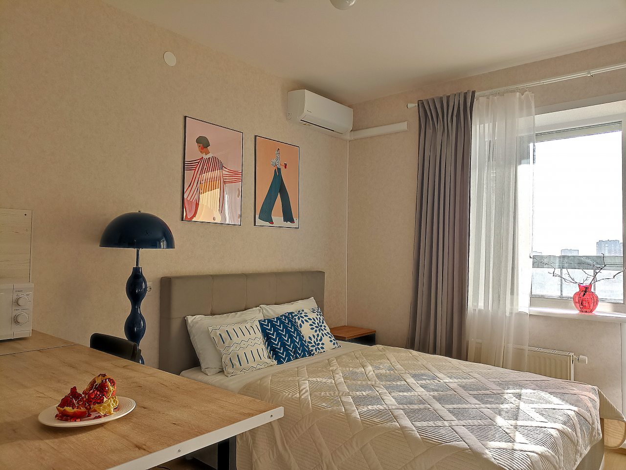 Квартира уютная, чистая и со вкусом оформлена. Всё выглядит аккуратно, приятно заходить после долгой дороги. Мягкое постельное бельё и хорошая шумоизоляция помогают выспаться. Радует, что окна выходят во двор, поэтому не слышно машин. Освещение тёплое, создаёт ощущение уюта.