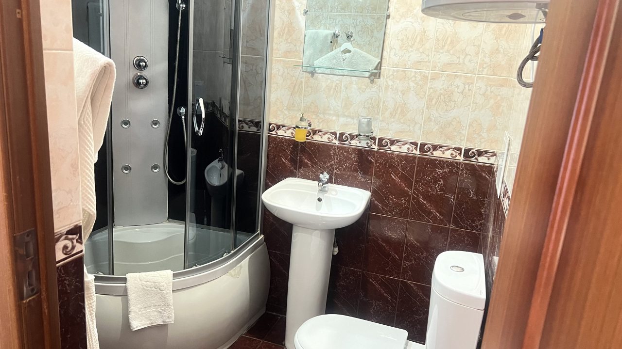 Отдыхали в красивом люксе с балконом. Очень нам все тут понравилось, конечно. Для нас были подготовлены чистые халатики и тапочки, а также гигиенические наборы. Также тут есть чайник, холодильник и удобный столик. Места достаточно, это же люкс, как никак. В стоимость входит вкусный завтрак на выбор.